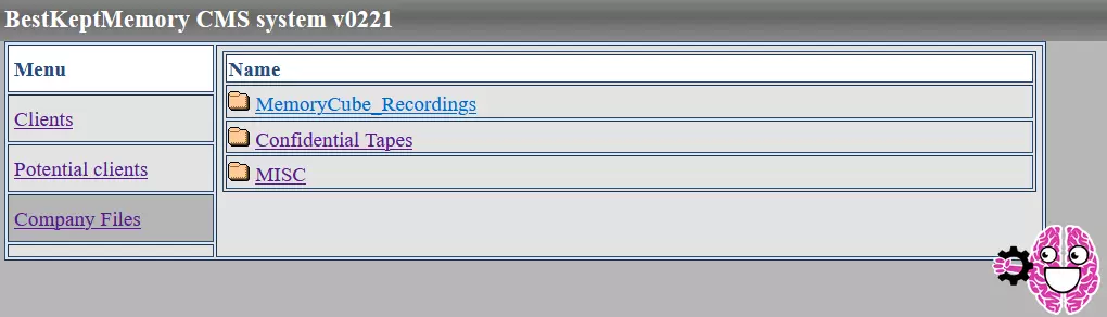 进入后台后,你可以浏览大量客户端文件,我不会逐一讨论其中的所有内容(但一定要去看看,RL团队为此付出的努力令人惊叹)。需要重点注意的是,客户端文件中隐藏着一些拼图碎片,这些碎片是对社区在隐藏卷轴中发现的碎片的补充。 公司文件 要正式“解决”这个ARG(替代现实游戏),你需要点击“Company Files”。