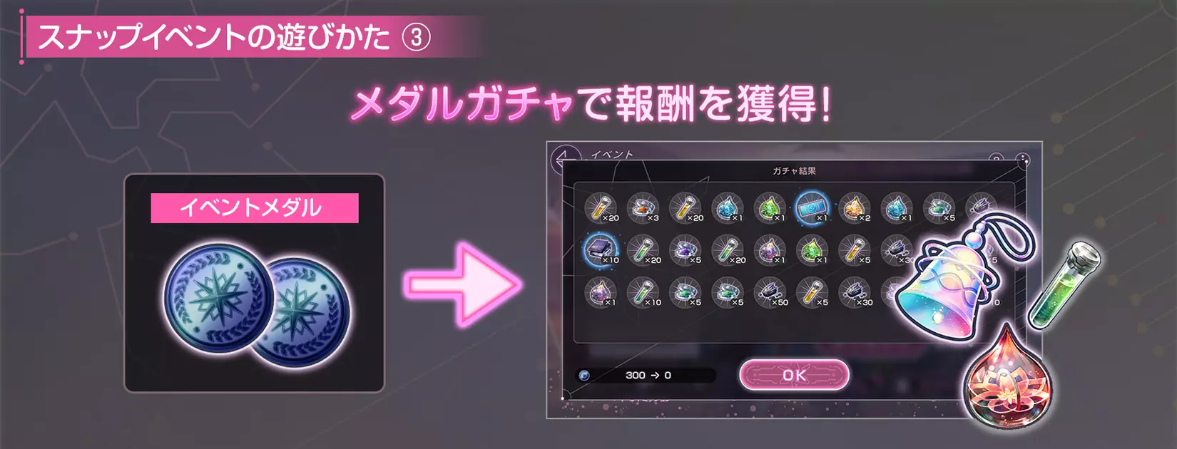 通过收集“活动勋章”来抽取活动专用的“勋章扭蛋”,即可获得各种奖励。