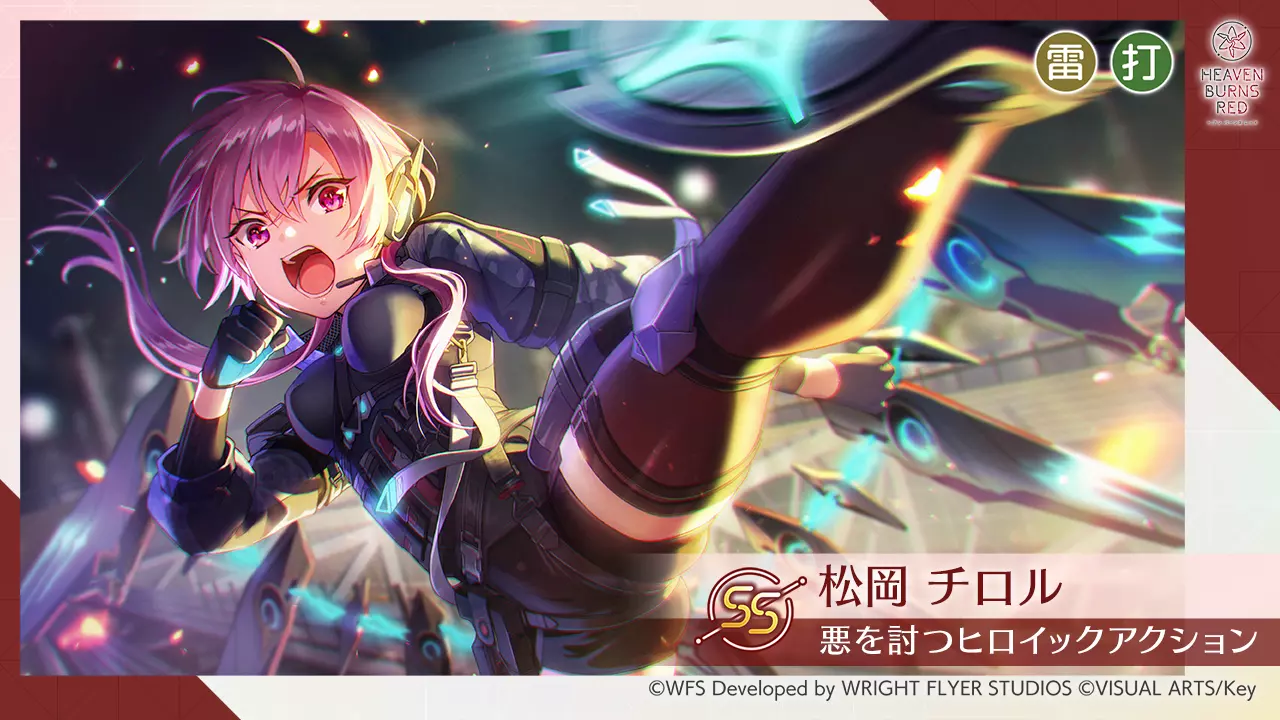 SS[讨伐邪恶的英勇动作] 松冈千露(CV 小岛唯)介绍! 属性:雷・打 以蓄力为能量守护同伴并进行攻击支援的DEFENDER(防御者) 蓄力期间可通过SP0为同伴附加防御力提升效果,也能在恢复全体SP的同时转为攻击状态 快照活动发布纪念 特别登录奖励