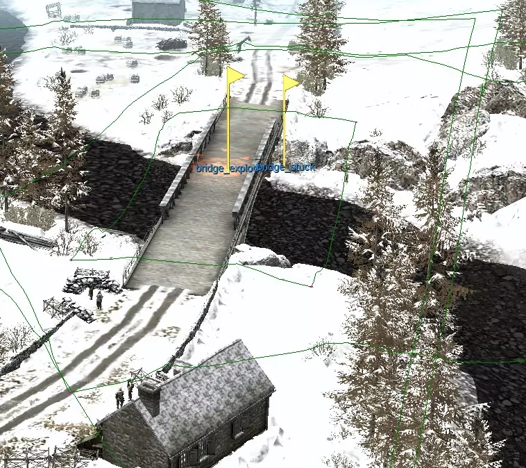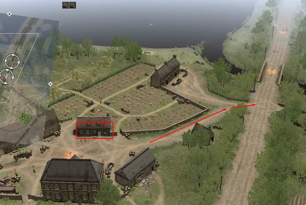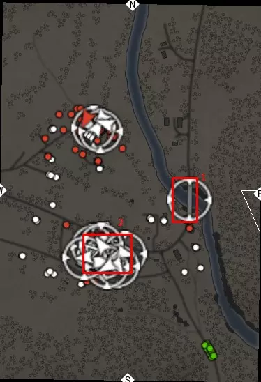和平主义者的选择 您需要在不炸毁桥梁(1)的情况下完成任务。 桥梁(1)和燃料卡车(2)的位置: