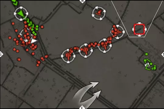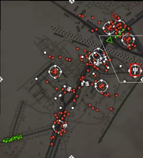 是的,他康复了,并且没有在1948年去世。 在防御期间,对话结束后,温特斯中尉需要跳入图中所示的战壕。 战壕位置:
