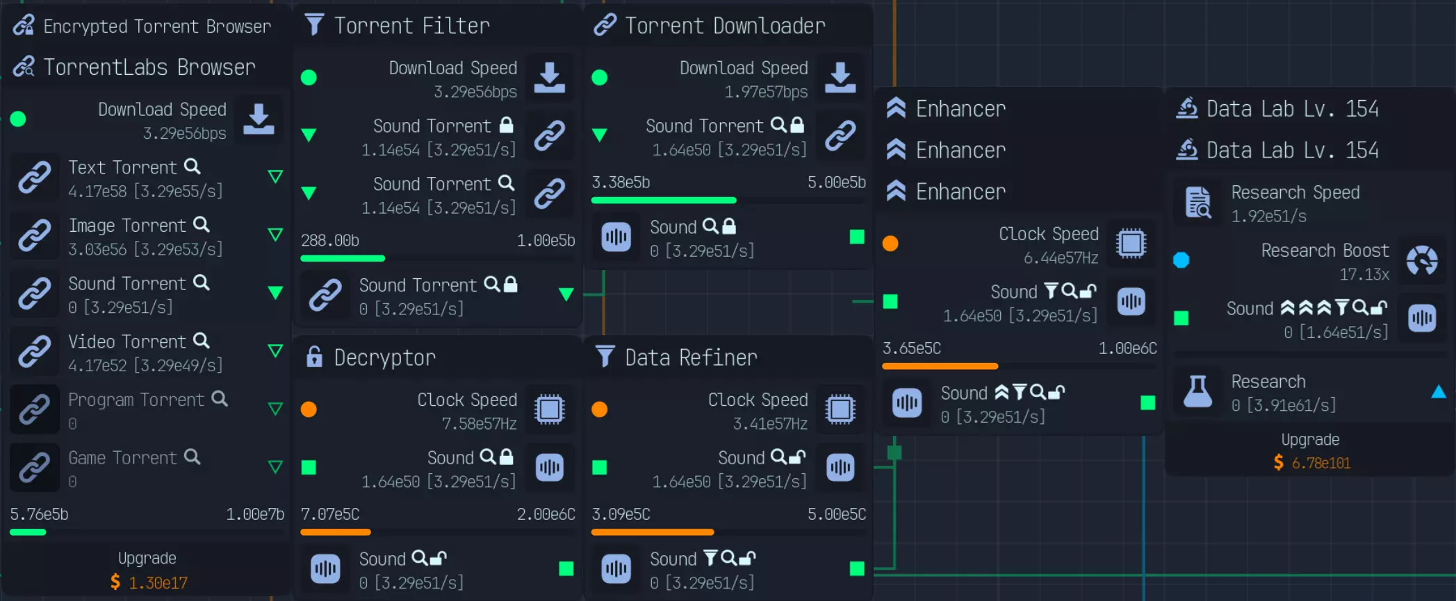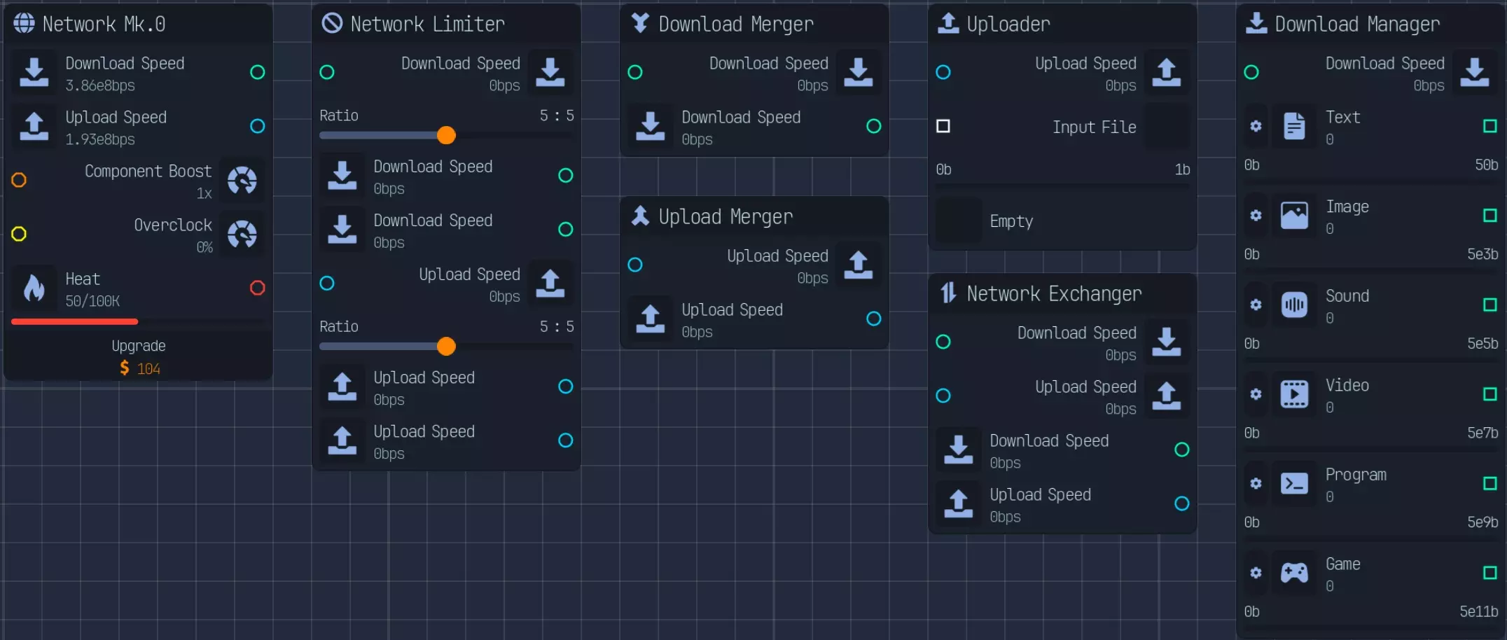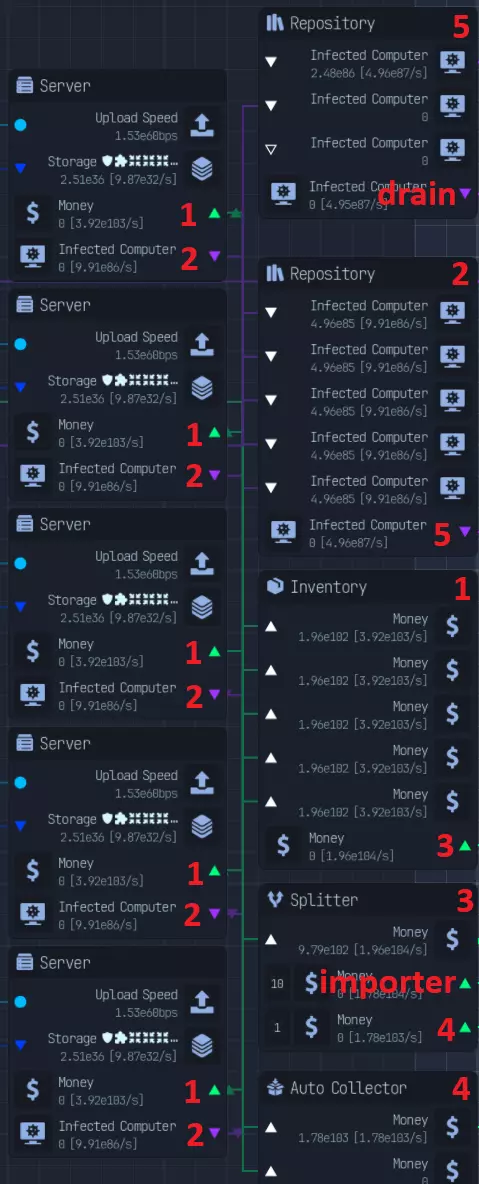 本指南将涵盖从游戏初期到游戏后期的内容,包括补充信息和布局建议。 基础内容:网络与金钱 网络与金钱系统的初始组成部分包括:网络、下载器、上传器和收集器。