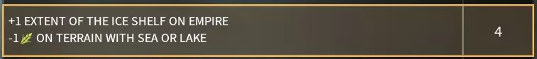 海军构造设施:-10%海军单位工业需求,此外每控制一个堡垒额外-1%,+1影响力产出。第四时代解锁。