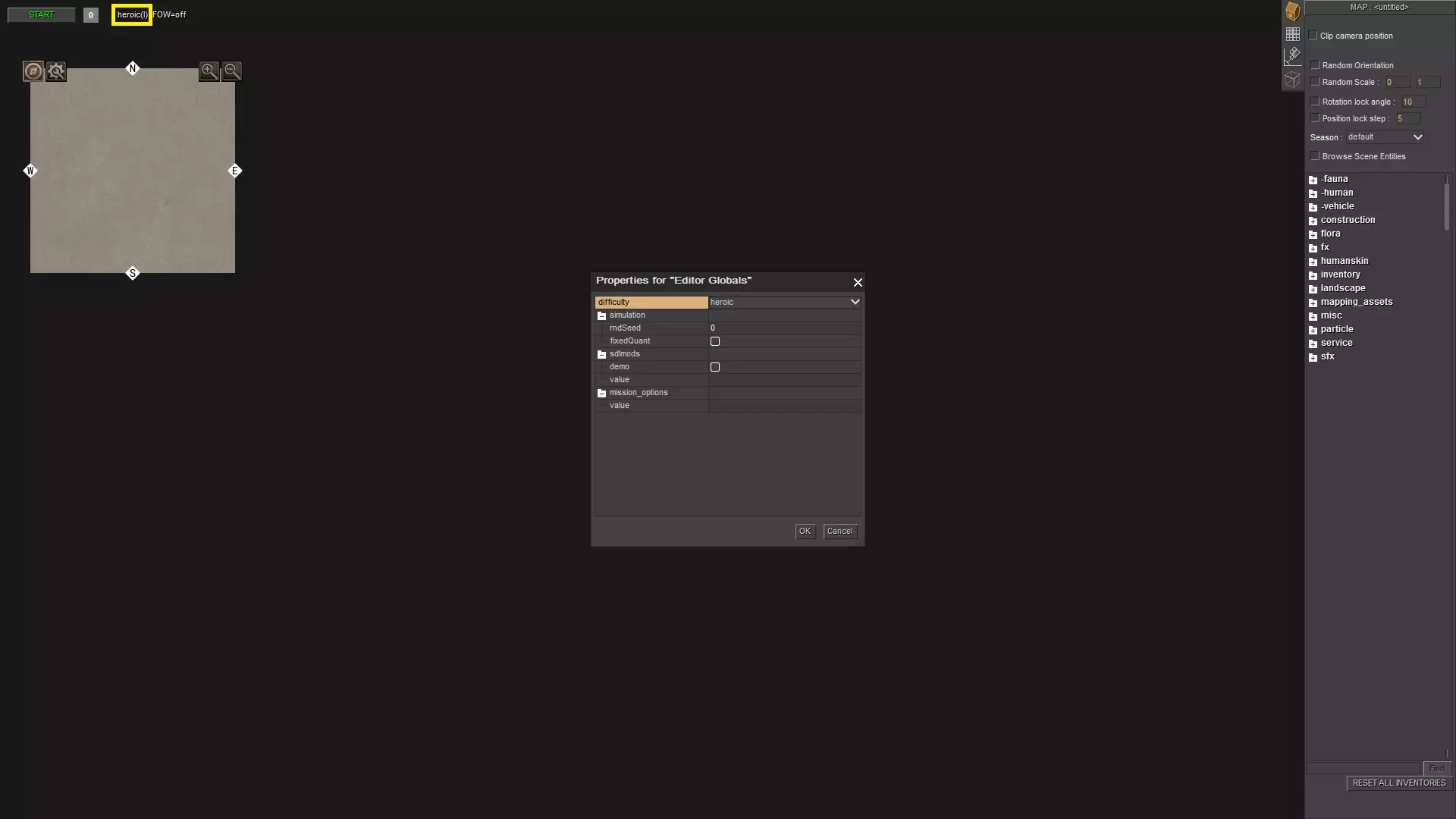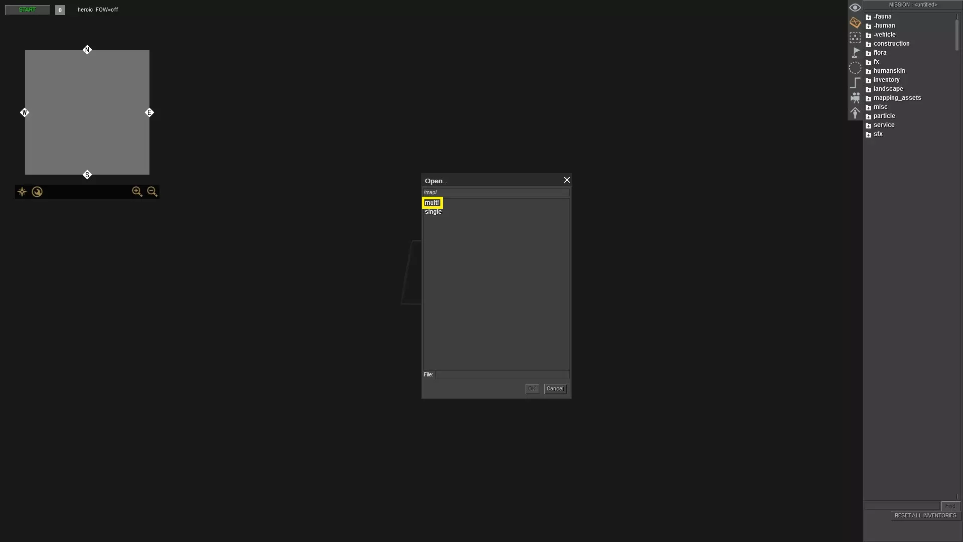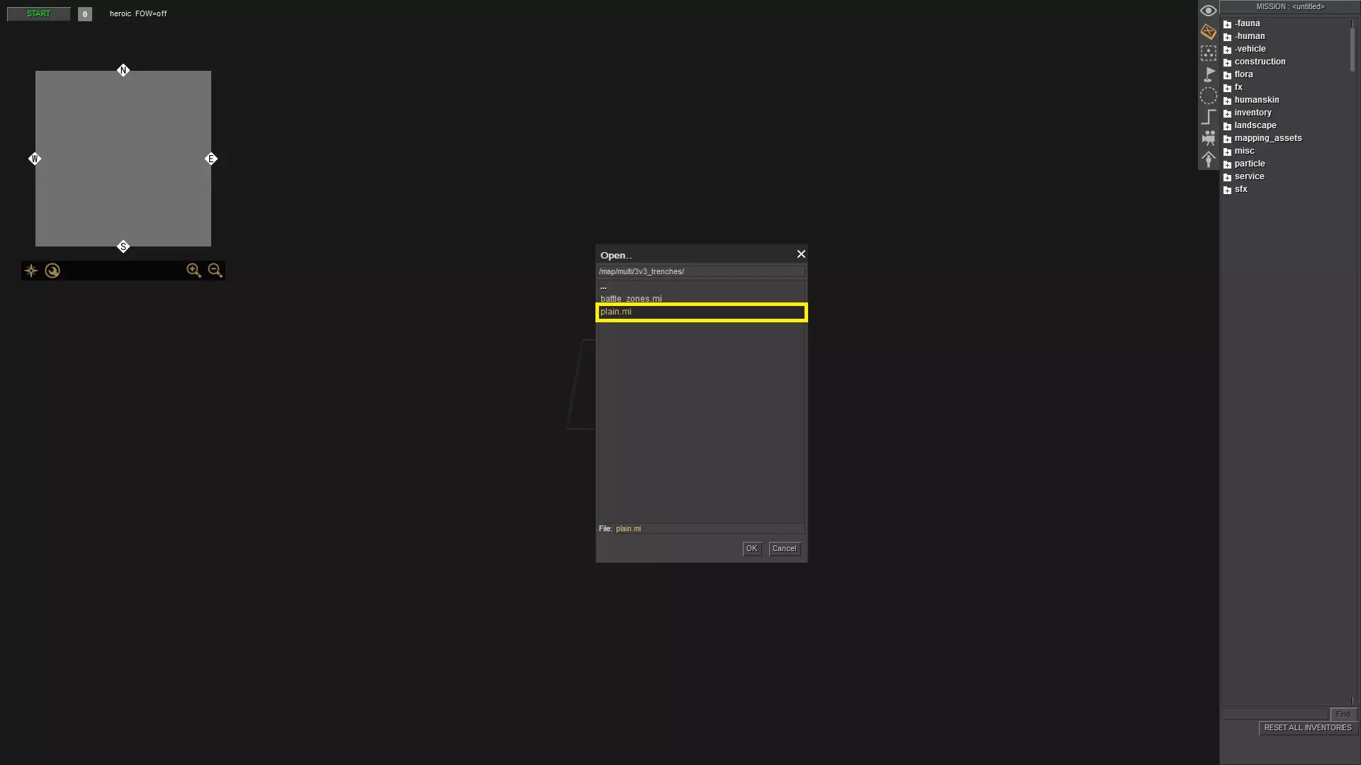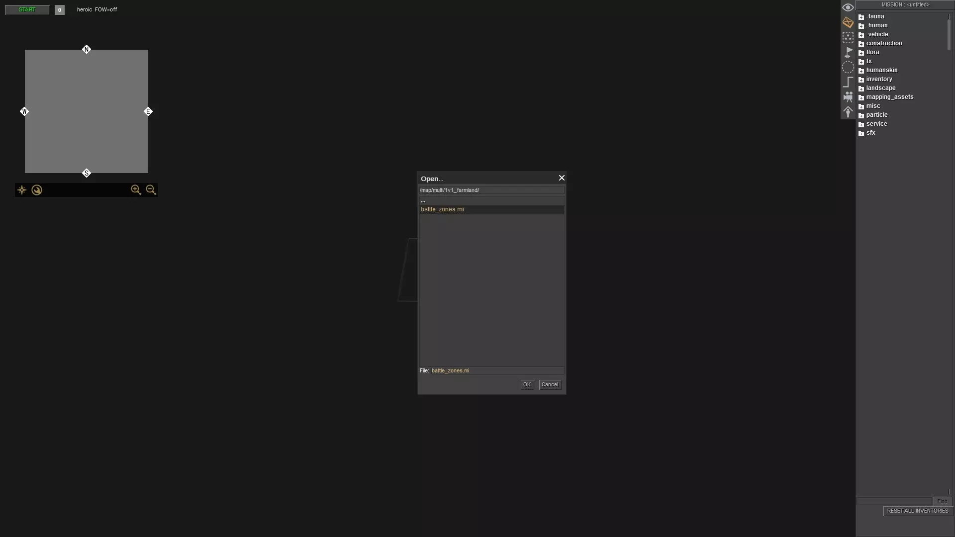 比如这里。在编辑器中,对于一场简单的战斗而言,存在许多无用的东西。你可以在任务编辑器中按F3键选中它们并删除,但还有另一种方法可以做到这一点,且不会有损坏多人游戏地图或其他任何地图的风险。