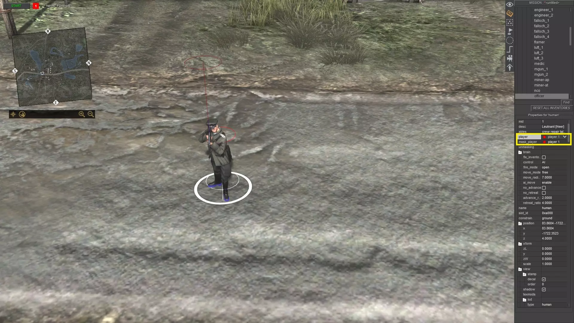单位操控设置 在此部分中,你可以在任务编辑器(F3)中设置由哪位玩家控制所选单位。若你更改“玩家”选项,“玩家掩码”将自动随之改变;但仅更改“玩家掩码”时,“玩家”选项不会发生变化。因此,若“玩家 = 玩家2”且“玩家掩码 = 玩家1”,你将能够通过按小键盘2来控制玩家2的单位,不过由于玩家1的单位与你拥有相同的“玩家掩码”,它们会被视为友方单位,你无法对其发起攻击。