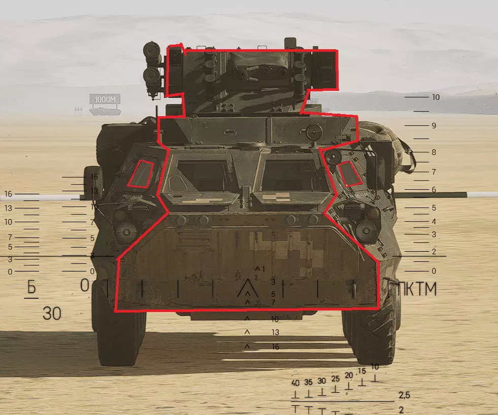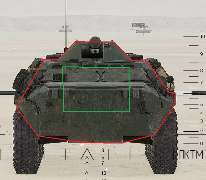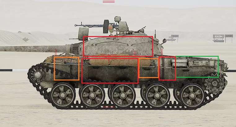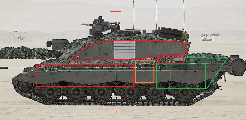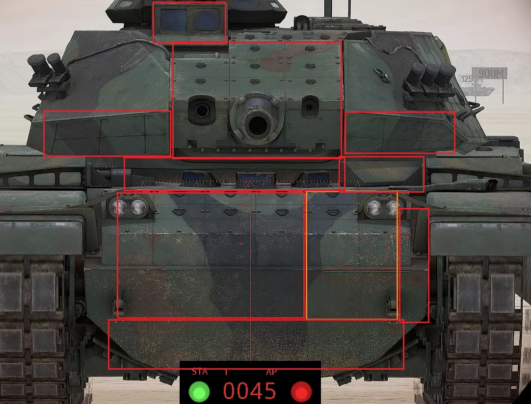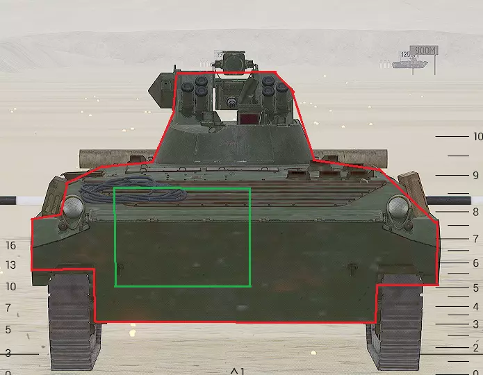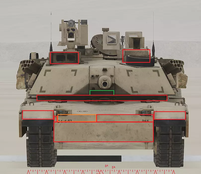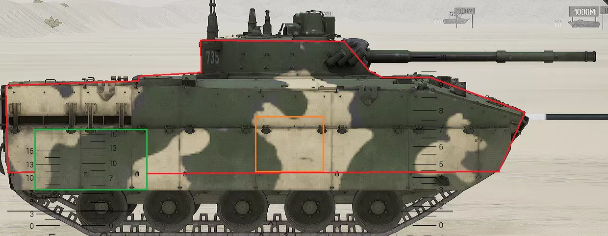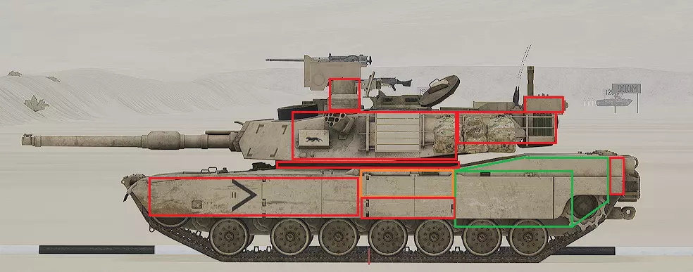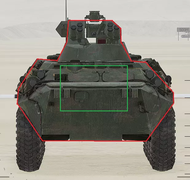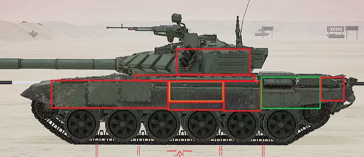 红色轮廓 - 穿透区域 绿色轮廓 - 发动机 橙色轮廓 - 弹药架(当距离<700米时,命中2次) 可在3D模式下查看任意载具装甲厚度以及炮弹命中位置和造成伤害情况的网站:https://squad-armor.com/ 创意工坊中可用于练习技能的模组:https://steamcommunity.com/sharedfiles/filedetails/?id=2848273764 俄语: 红色 - 穿透区域 绿色 - 发动机 橙色 - 弹药架(当距离<700米时,命中2次) 可在3D模式下查看任意载具装甲厚度以及哪些炮弹可将其穿透的网站:https://squad-armor.训练用模组:https://steamcommunity.com/sharedfiles/filedetails/?id=2848273764 冲击效果/命中效果