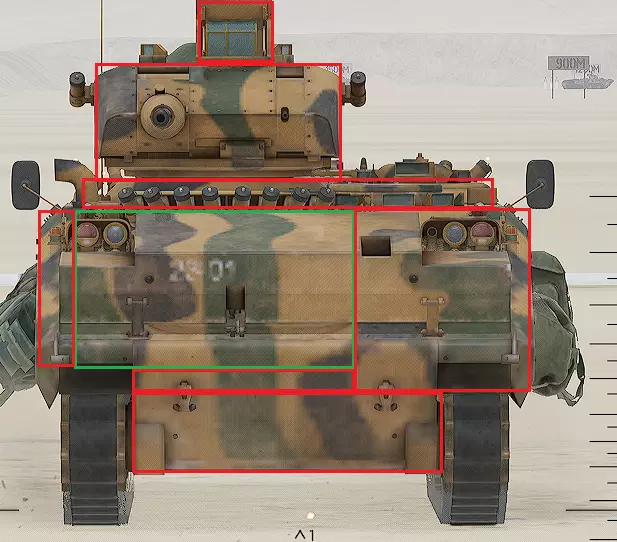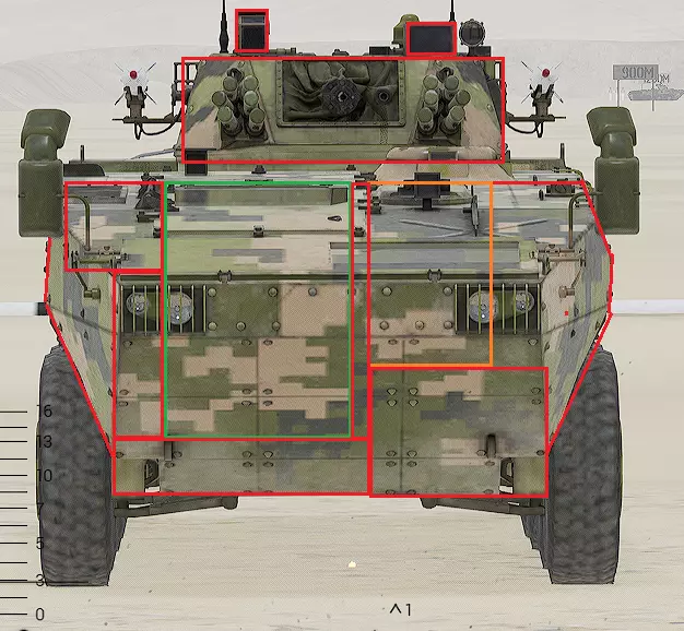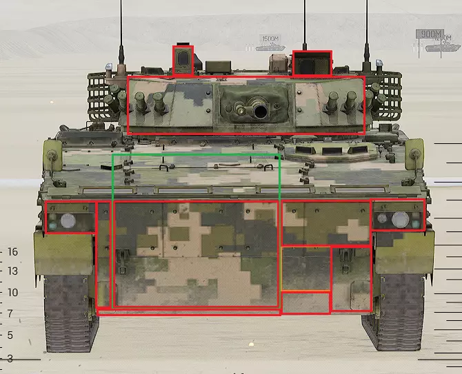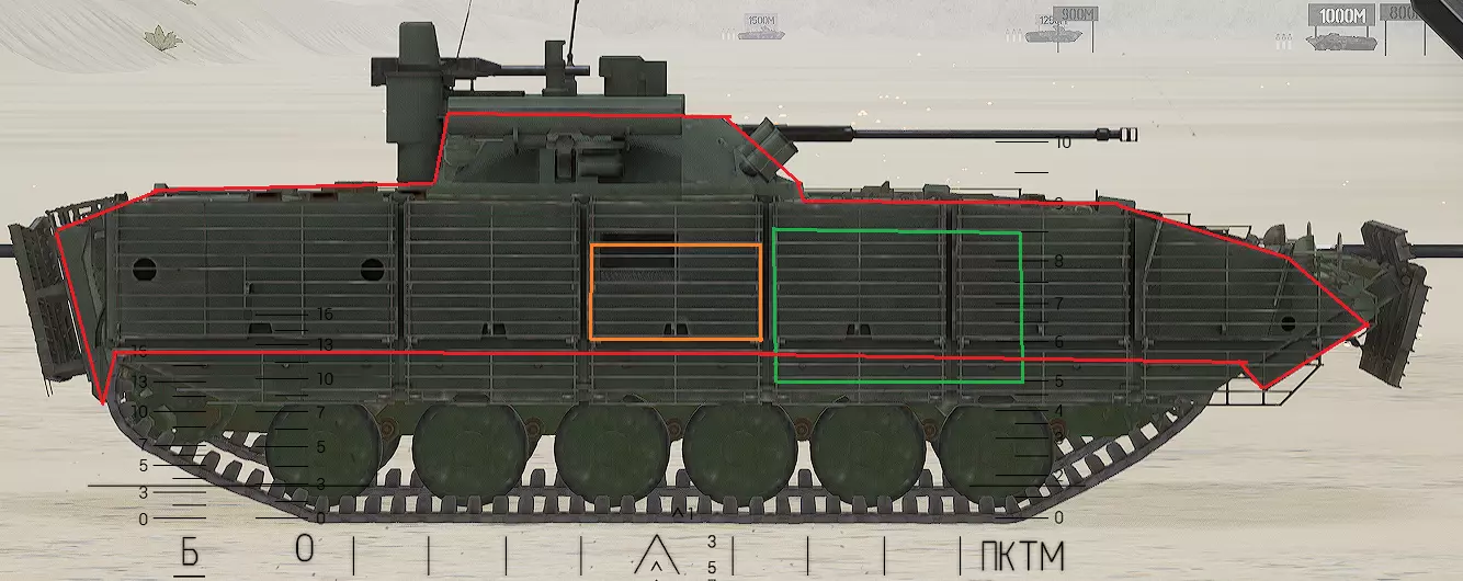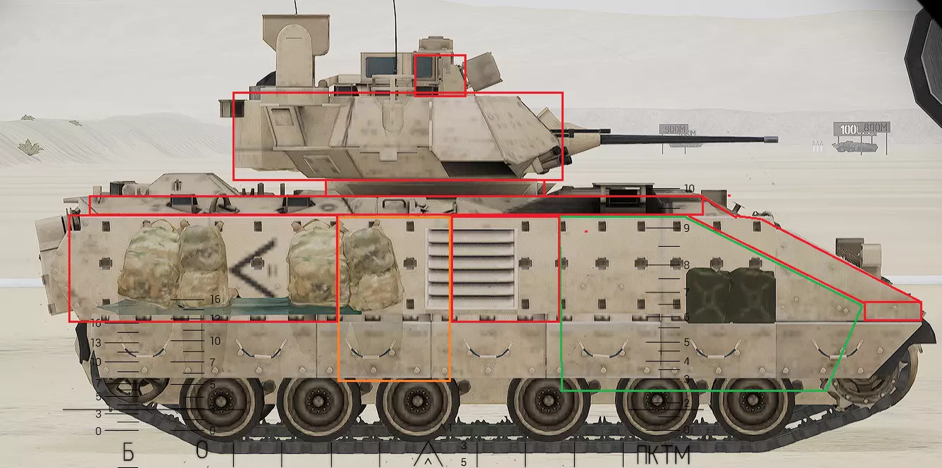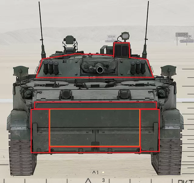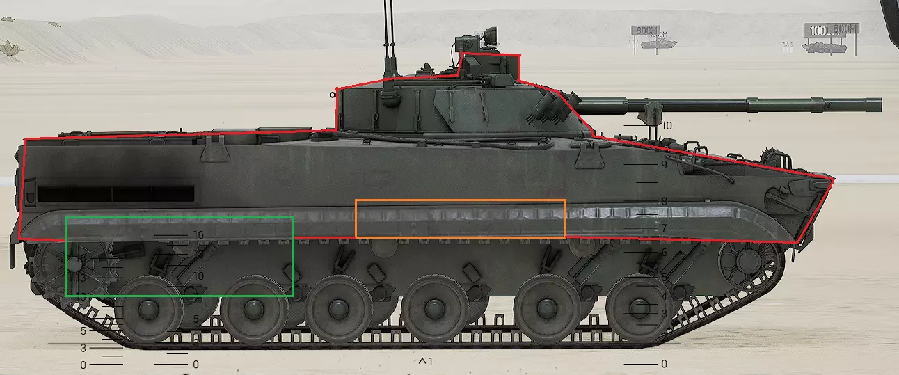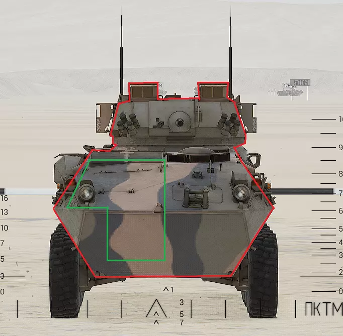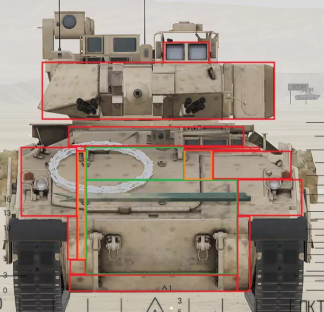 红色轮廓 - 穿透区域 绿色轮廓 - 发动机 橙色轮廓 - 弹药架(当距离<700米时,命中2次) 可在3D模式下查看任意载具装甲厚度以及炮弹命中位置和造成伤害情况的网站:https://squad-armor.com/ 创意工坊中可用于练习技能的模组:https://steamcommunity.com/sharedfiles/filedetails/?id=2848273764 俄语: 红色 - 穿透区域 绿色 - 发动机 橙色 - 弹药架(当距离<700米时,命中2次) 可在3D模式下查看任意载具装甲厚度以及哪些炮弹可将其穿透的网站:https://squad-armor.训练用模组:https://steamcommunity.com/sharedfiles/filedetails/?id=2848273764 冲击效果/命中效果