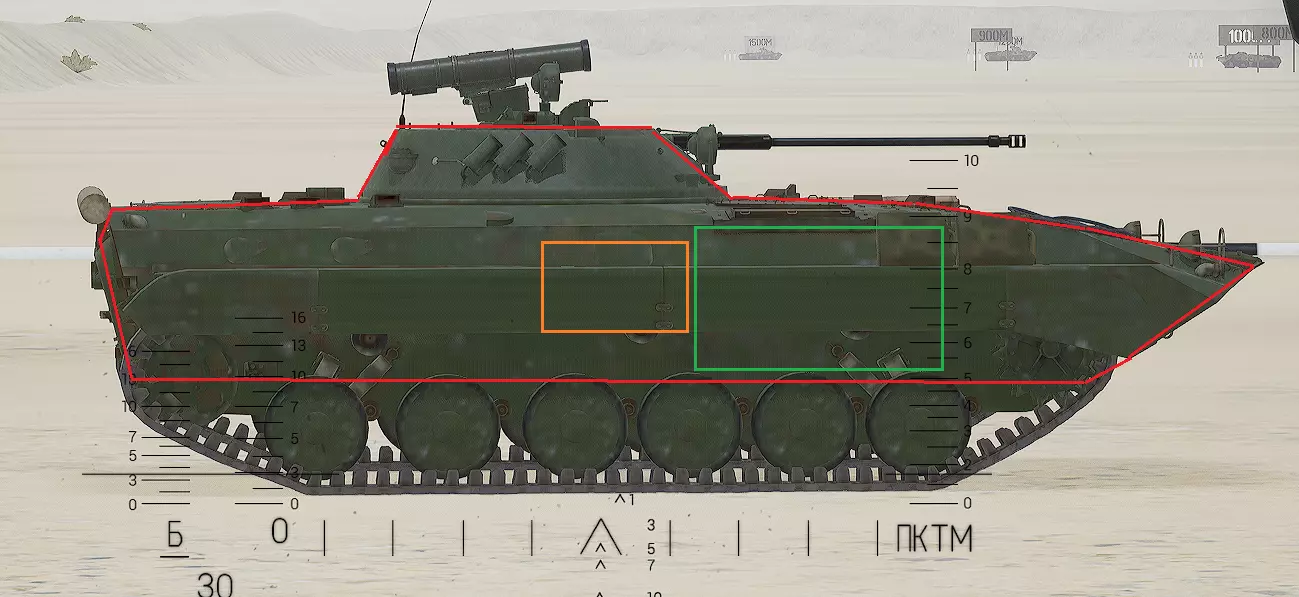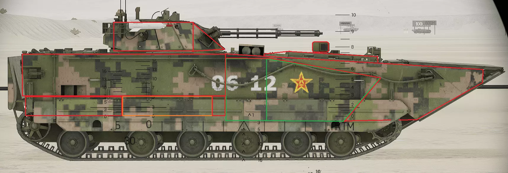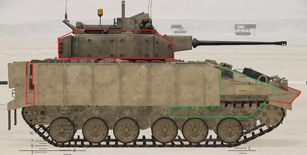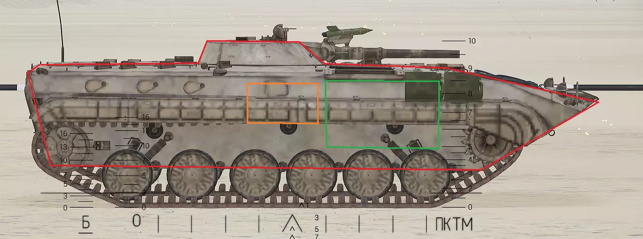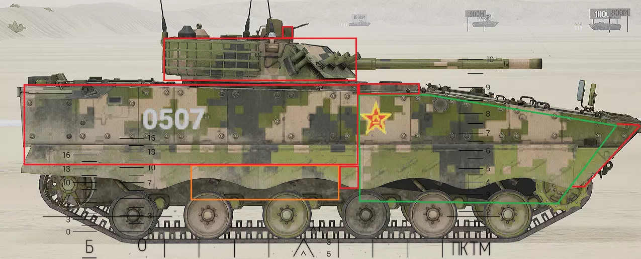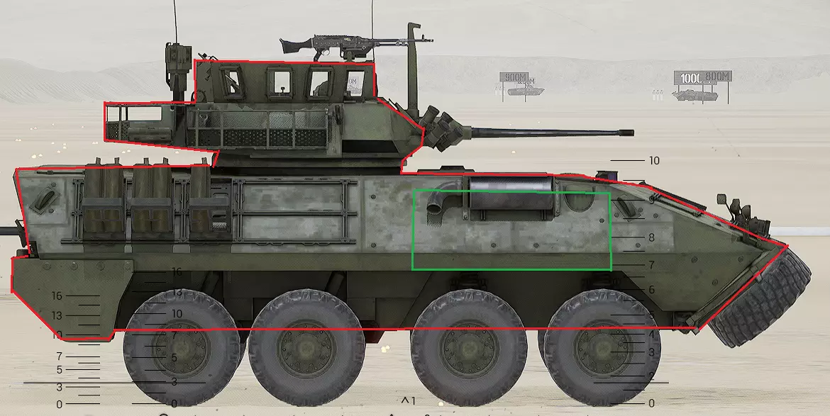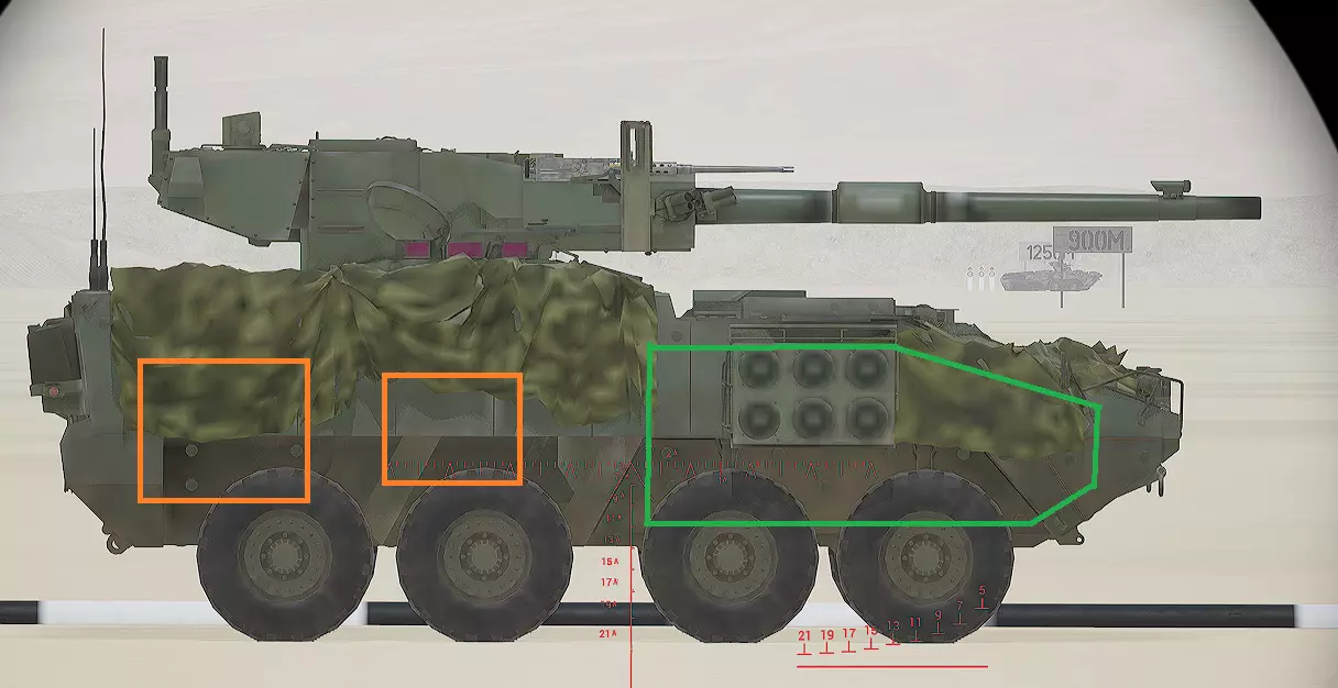 红色轮廓 - 穿透区域 绿色轮廓 - 发动机 橙色轮廓 - 弹药架(当距离<700米时,命中2次) 可在3D模式下查看任意载具装甲厚度以及炮弹命中位置和造成伤害情况的网站:https://squad-armor.com/ 创意工坊中可用于练习技能的模组:https://steamcommunity.com/sharedfiles/filedetails/?id=2848273764 俄语: 红色 - 穿透区域 绿色 - 发动机 橙色 - 弹药架(当距离<700米时,命中2次) 可在3D模式下查看任意载具装甲厚度以及哪些炮弹可将其穿透的网站:https://squad-armor.训练用模组:https://steamcommunity.com/sharedfiles/filedetails/?id=2848273764 冲击效果/命中效果