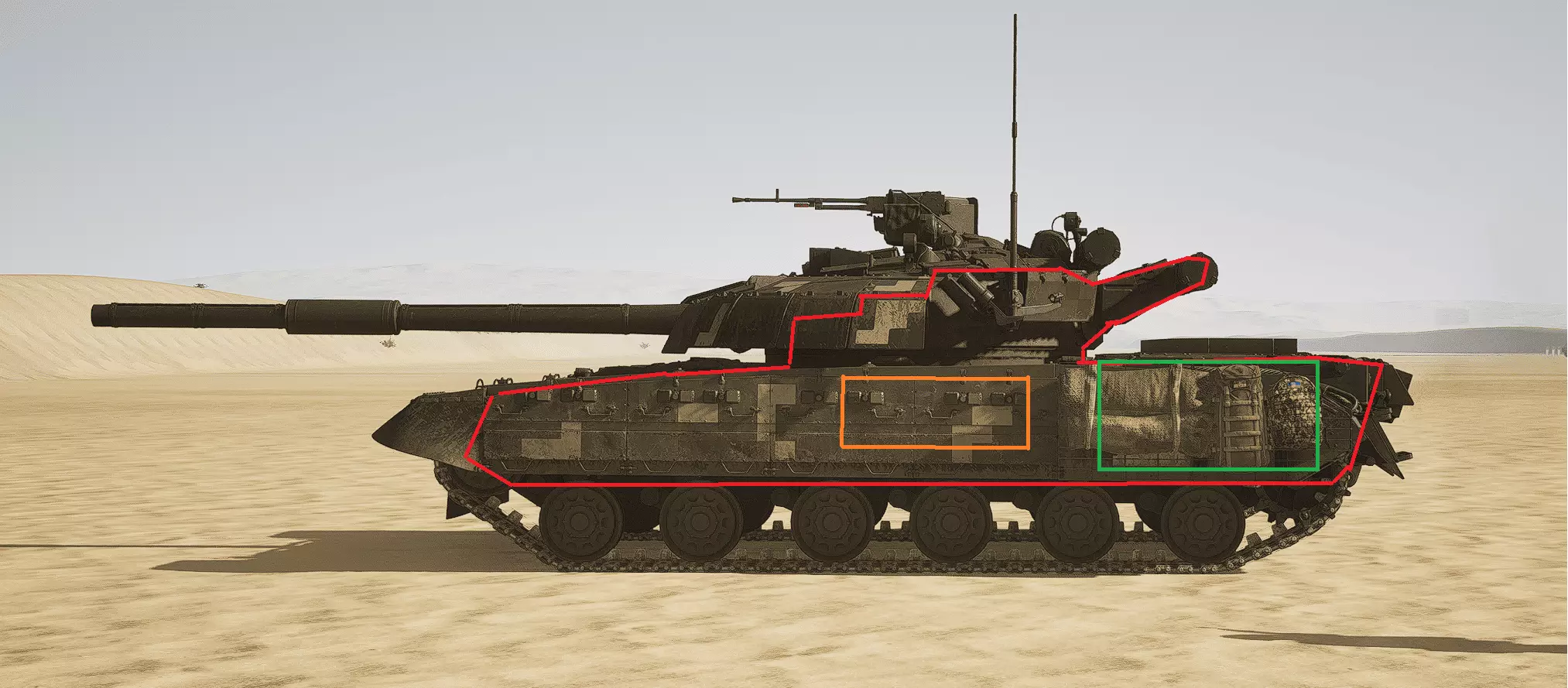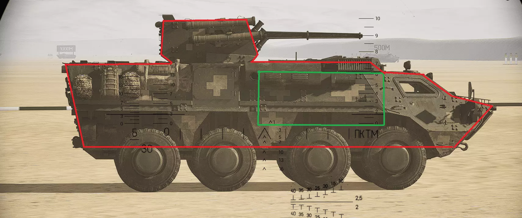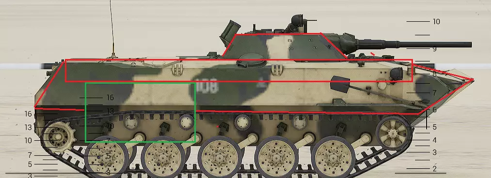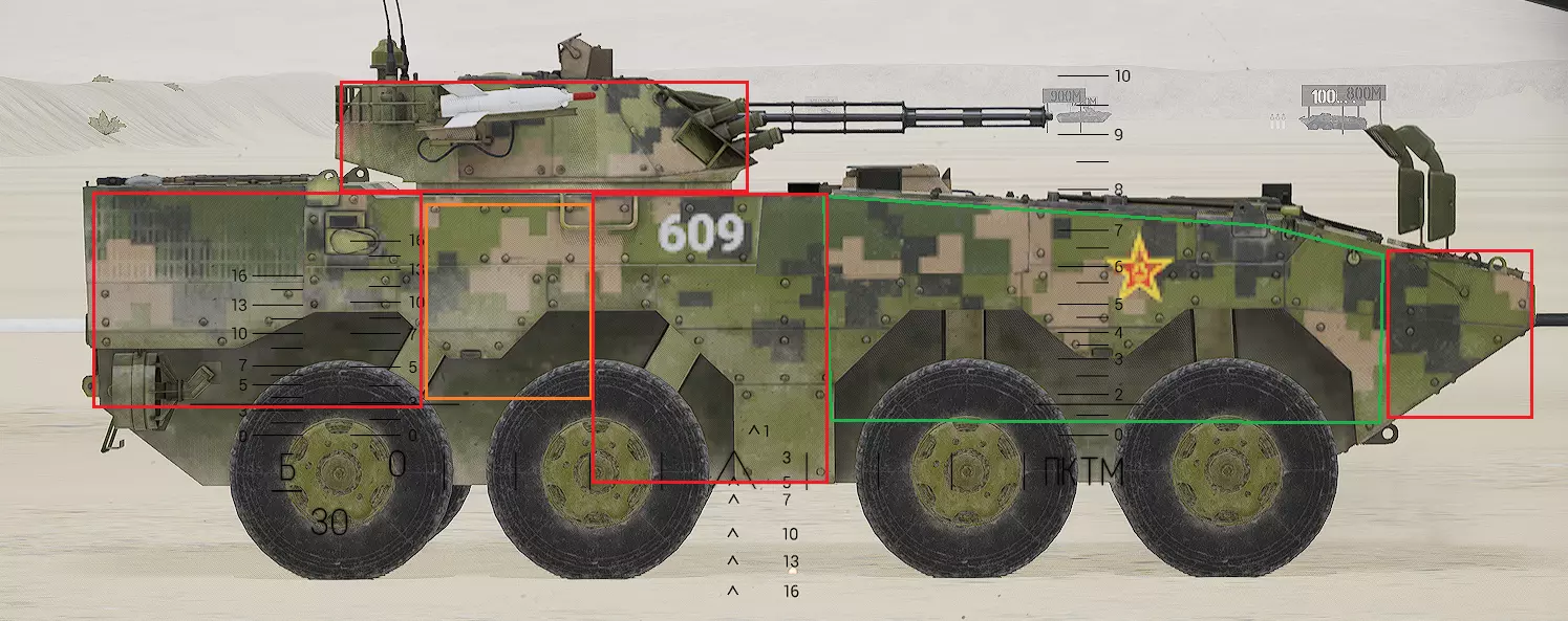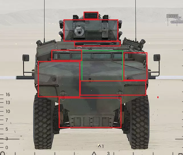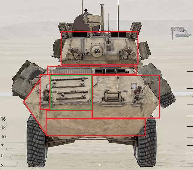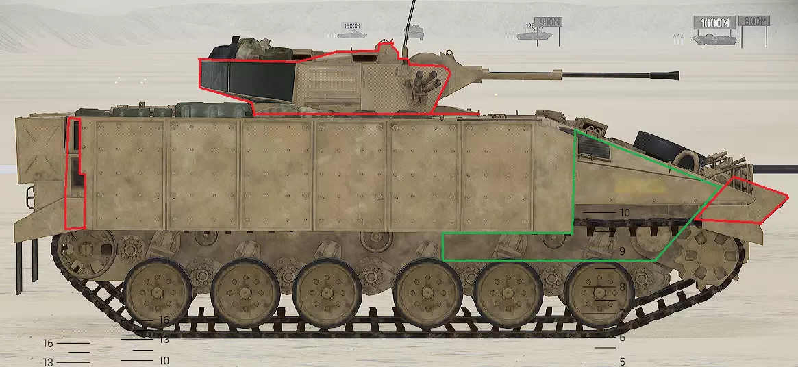 红色轮廓 - 穿透区域 绿色轮廓 - 发动机 橙色轮廓 - 弹药架(当距离<700米时,命中2次) 可在3D模式下查看任意载具装甲厚度以及炮弹命中位置和造成伤害情况的网站:https://squad-armor.com/ 创意工坊中可用于练习技能的模组:https://steamcommunity.com/sharedfiles/filedetails/?id=2848273764 俄语: 红色 - 穿透区域 绿色 - 发动机 橙色 - 弹药架(当距离<700米时,命中2次) 可在3D模式下查看任意载具装甲厚度以及哪些炮弹可将其穿透的网站:https://squad-armor.训练用模组:https://steamcommunity.com/sharedfiles/filedetails/?id=2848273764 冲击效果/命中效果