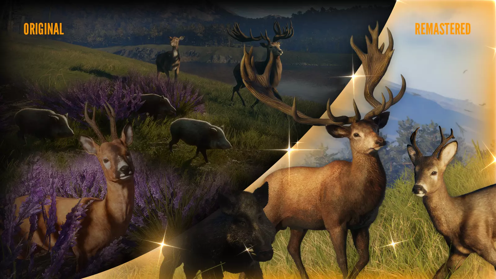 3 种重制版动物 - **马鹿**(新增 3 种皮毛变体) - **狍鹿**(新增 2 种皮毛变体) - **野猪**(新增 2 种皮毛变体) 均已完成重制。