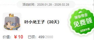 完成任意 1 项 → 抽取10名玩家领取第一档奖励,乐币*233~(有效期30天)