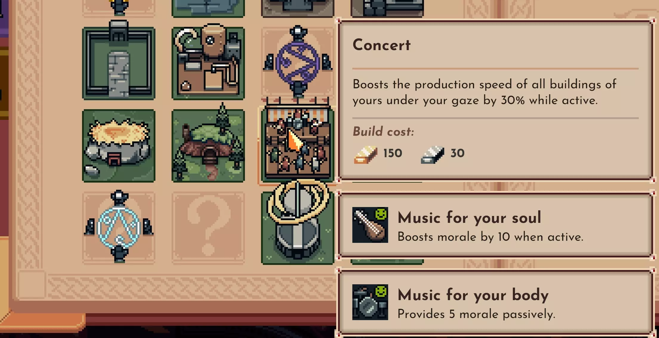 这些改动共同为你提供了更多战略控制权,同时保留了肉鸽类王国游戏特有的随机乐趣。 机制改动 士气 首先,我们来谈谈士气。我们觉得士气建筑的利用率不高,除了某些特定的Spellus流派玩法外。我们希望它们能发挥更大作用。这些建筑中的大多数升级现在将提供被动士气加成,确保即使你不特意关注它们,它们依然具有价值。