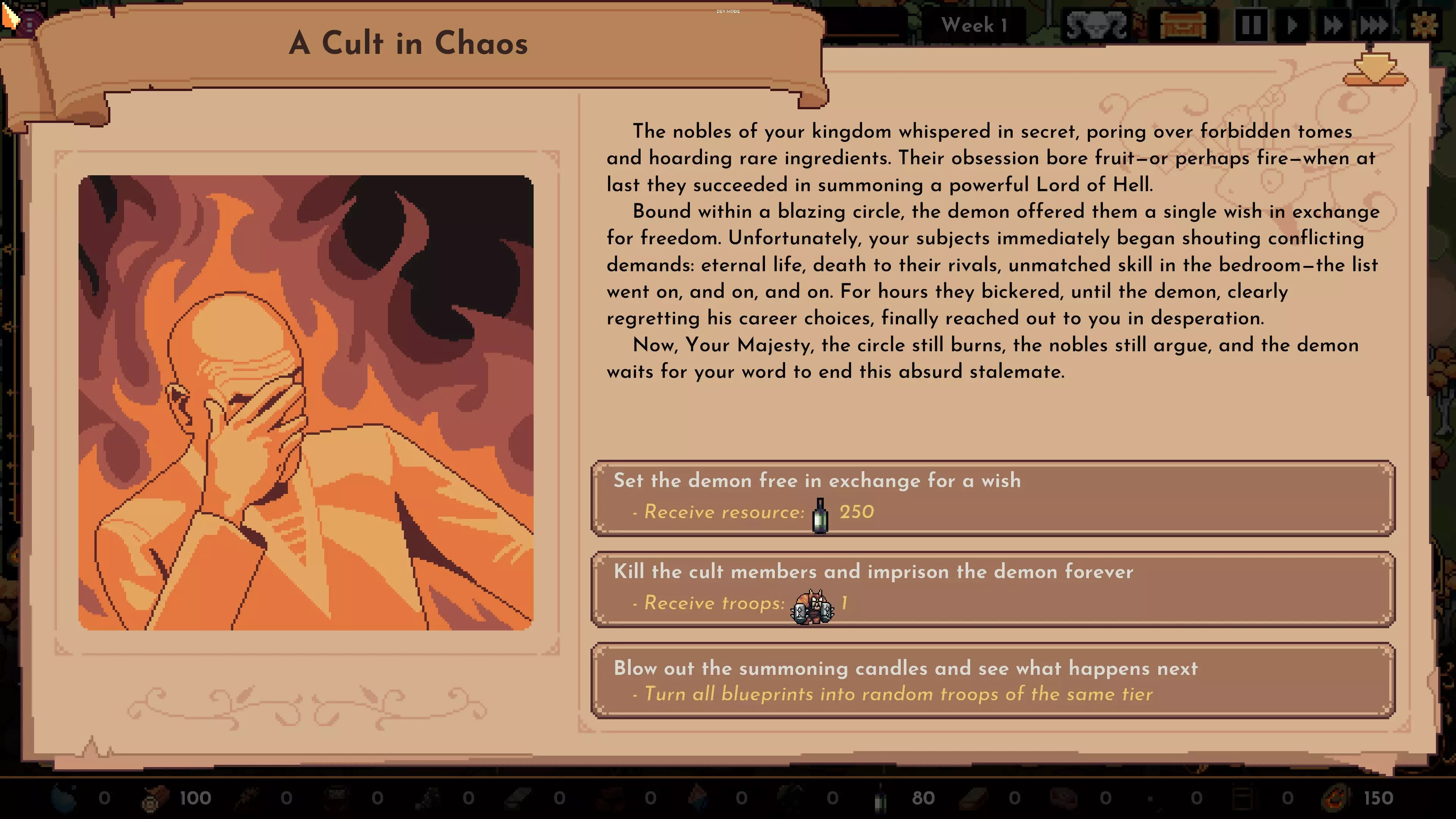 ### 简短更新摘要: - **全新火山地图**:围绕“地狱”主题展开。招募9种全新恶魔部队,填满“崇拜计量条”,即可解锁地狱级奖励。你可能需要这些奖励来对抗由6位新首领指挥的全新敌人——猩红哥布林与熔岩生物。上述所有内容均为火山地图专属! - **其他新增内容**:商人折扣、建筑禁用机制、重roll升级等。 - **新增17件全新神器**,助力强化你的构筑。 - **4位新顾问**,并对十多位现有顾问进行了优化。 - **4种全新部队**将在整个游戏中可用,为部分构筑增添必要的多样性。 - 游戏原声带已更新,加入本次更新的全新音轨。