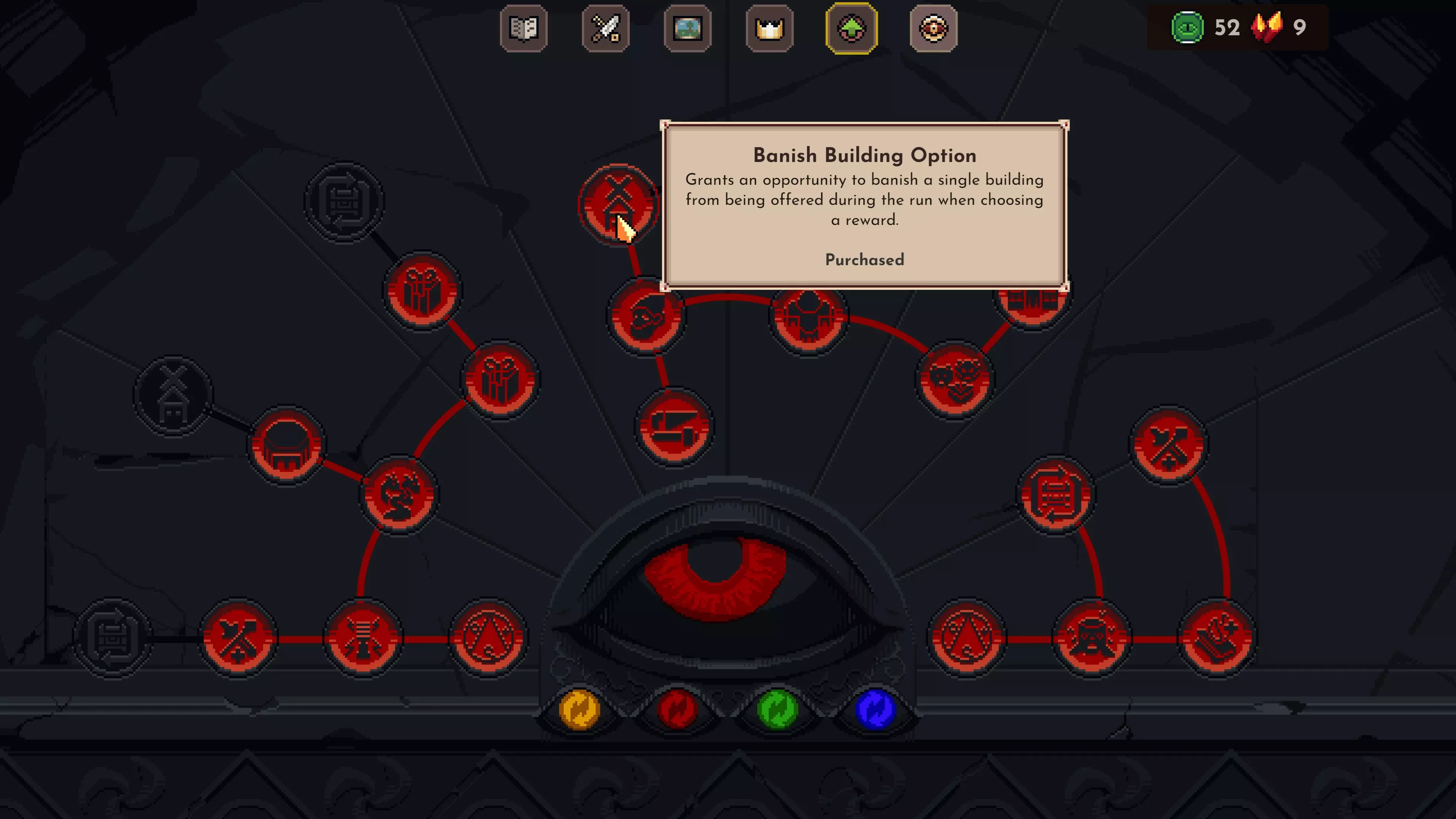 1. 现在你可以禁止特定建筑出现在奖励池中。你可以通过王国永久升级来解锁此功能并增加使用次数。 2. 增加一次免费重roll的升级已扩展为王国升级树中的三个独立升级,每个升级各提供一次重roll机会。 3. **新增了允许重roll artifacts(除传奇品质外)的升级。** 4. **Artifacts现在可特定于某些地图,例如“Nether Contract”,该artifact在你的单位死亡时会为你提供2个Nether符文。** 5. **研究台现在也能生成1级兵种建筑的蓝图。为配合游戏内的这一整体改动,我们降低了可选波次中1级兵种建筑的出现概率,同时提高了其他奖励的出现可能性。**大多数士气加成现在改为被动提供,而非在观察建筑时触发。 士气弹窗会显示更多关于士气加成来源的信息。 新解锁的画作会显示眼睛图标,以区别于已查看过的画作。 新增击败火山区域所有 Boss 的挑战和成就。