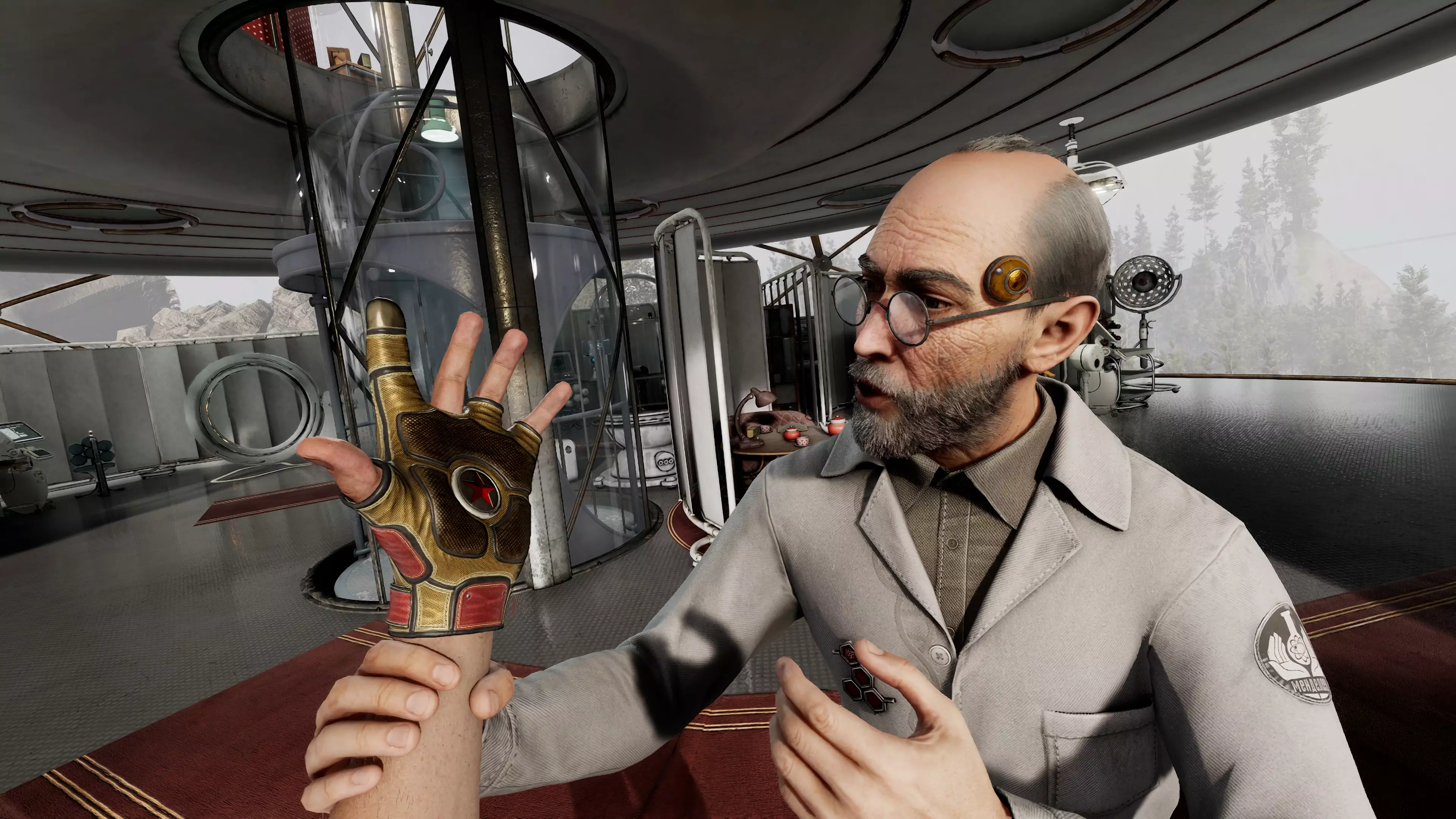 角色特质与趣闻 列别捷夫是那种并非通过冗长对话,而是通过细节与氛围来展现个性的角色。在游戏中与他的互动仅限于短暂会面,因此每段对话都经过了精心设计。他的话语不仅推动着剧情发展,更传递出这位科学家的身份特质。 列别捷夫的实验室被打造为与3826设施冰冷的工业车间完全相反的存在。从桌上的茶,到成堆的蓝图,再到仪器发出的轻柔嗡鸣,这里的一切都散发着舒适感。这些细微之处体现了他的人情味,以及他与自己机器人之间近乎慈父般的关系。 特别值得一提的是他的助手——机器人捷连季(型号RAF-9)。列别杰夫不仅为他取了名字,还为他安装了能让他表现得更“人性化”一点的固件。在一个场景中,捷连季试图给列别杰夫递上茶和巧克力,但由于手部构造的问题,无论他怎么努力都无法端稳托盘。这段小插曲增添了幽默与温情,同时巧妙地凸显了列别杰夫的另一个特点:对甜食毫无抵抗力。