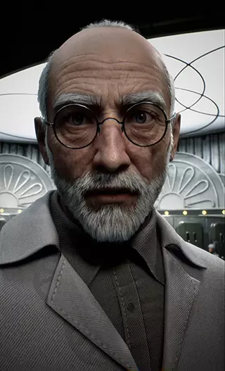 初始草图:阴影中的科学家 当《原子之心》宇宙的基础才刚刚勾勒出来时,阿列克谢·列别杰夫博士就已出现在剧本草稿中。起初,他只是文件里的一个名字:一位数学家兼工程师,曾参与3826号设施计算技术的开发。他的形象与那些标志着技术革命开端的物品的创造紧密相连:“集体1.0”(Kollektiv 1.0)、首批机器人、“未来收音机”以及枢纽系统。