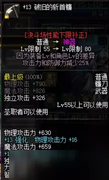 2.徽章无效。 强化、锻造、增幅有效,但被大幅弱化。减小贫富差距。 3.装备以最高等级、最高品质为优。 如果穿白装,系统会进行修正。另外,按“HOME”键可以查看切换装备属性(每件装备都有分地下城刷图与决斗属性),武动之魂系列装备除外。