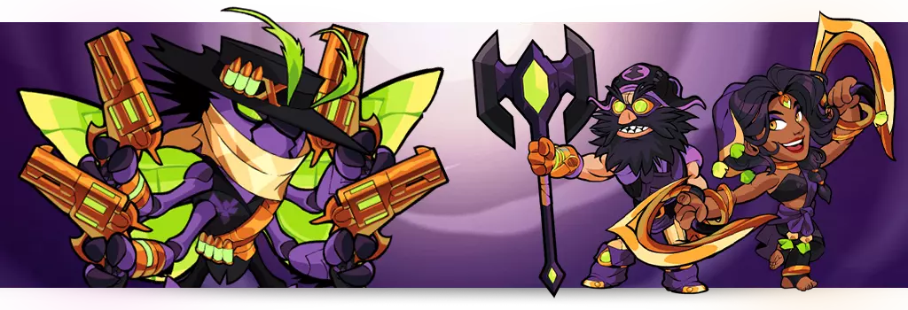 《英灵乱战》2025万圣节超级捆绑包 小心潜伏在阴影中的事物,本捆绑包为所有这些季节性物品提供了超优惠折扣! - **骑士卢西恩传奇皮肤** - **僵尸新娘幻影传奇皮肤** - **恶魔娃娃阿卡迪亚传奇皮肤** - **死亡射线传奇皮肤** - **怪物纳什传奇皮肤** - **骷髅阿苏丽传奇皮肤** - **魅惑猩红传奇皮肤** - **终结者鳄鱼奥尼克斯传奇皮肤** - **恶魔骑士阿尔忒弥斯传奇皮肤** - **蝙蝠狼人拉格尼尔传奇皮肤** - **骷髅卡特里娜塞文传奇皮肤** - **2025年独家新品:闹鬼庄园领奖台**