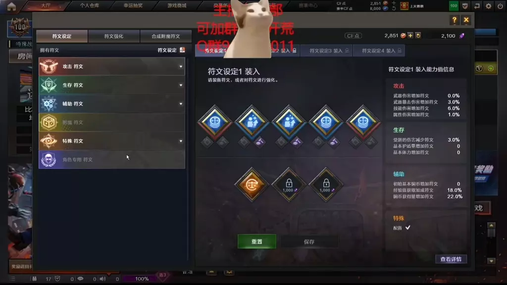 附:永久增加属性的食物也已并入此表 相关速算: 暴击: - 法师的暴击率=本体6%+法师小屋15%+食物21%+武器镶嵌15%+星影秘冠(+15%)=88% - 刺客暴击率=本体30%+食物21%+猎隼锐盔(+15%)=82% - 幽冥、修罗的2技能发动时,暴击率均提升至100% - 斗士暴击率=本体37%+食物21%+武器镶嵌15%+幻影一击10%=83% 食物=幸运蜜露1×6+命运蜜晶5×3=21% 闪避:普通状态可叠加到上限65%,幽冥2技能可升至70%,修罗2技能可升至80% 2. 符文
