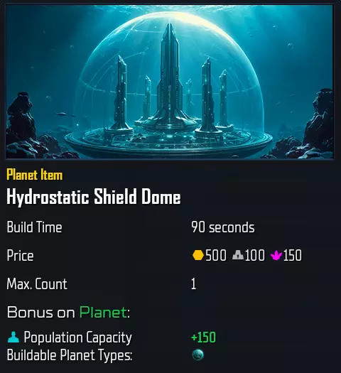 **流体静力护盾穹顶**+75 / +150 **海洋** **需要第二项科技**