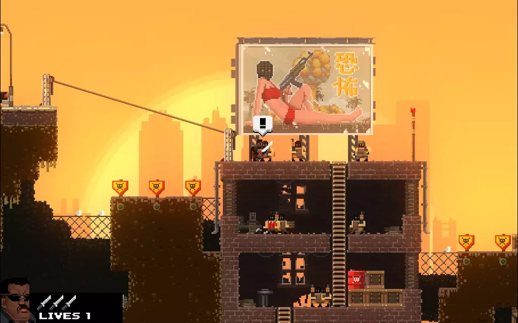 你知道我说过最后再杀你吧? 使用布罗曼多将撒旦扔下悬崖 正如标题所说,你需要使用布罗曼多[broforce.wikia.com]并将撒旦扔下悬崖。