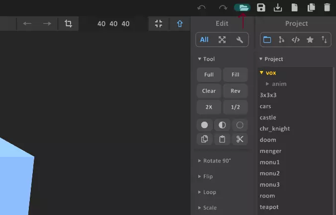 然后,在第7行或其附近,找到类似“player/player_[所选角色名称].vox”的内容。以我为例,会显示为“player/player_magnus.vox”。选中该内容,按下Control + H打开替换菜单。在替换内容中,你需要将其更改为“MOD”加上你的.vox文件路径。以我为例,这会是“MOD/vox/battle_droid.vox”。然后,选择“全部替换”。最后,关闭替换菜单,按下Control + S保存文件,之后就可以关闭该.xml文件了。 我跟你说过这个方法比较复杂,但你做到了。 ### 编辑模型 打开Magicavoxel.exe。点击左上角的文件夹图标,然后从你的模组目录中选择你的.vox文件。你也可以将其直接拖放到Magicavoxel的窗口中。