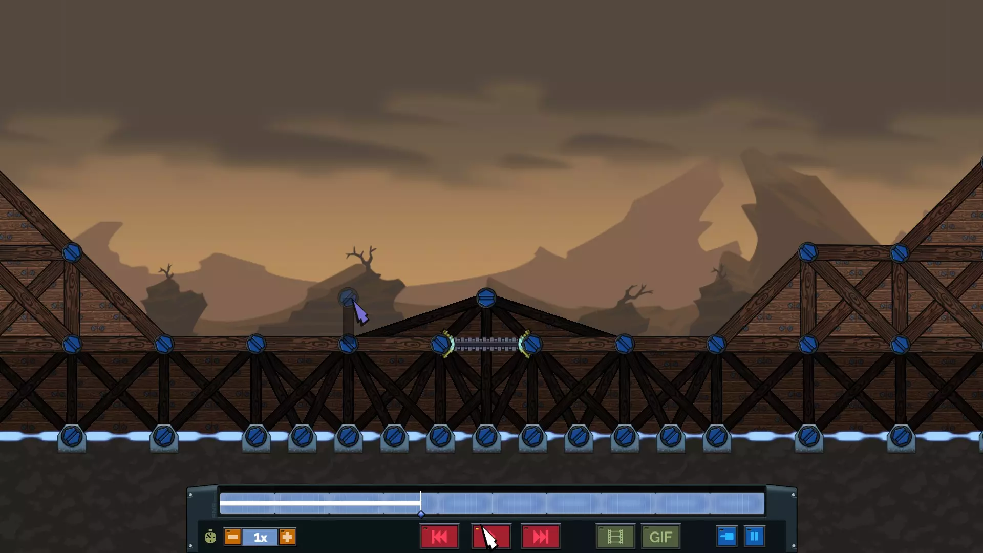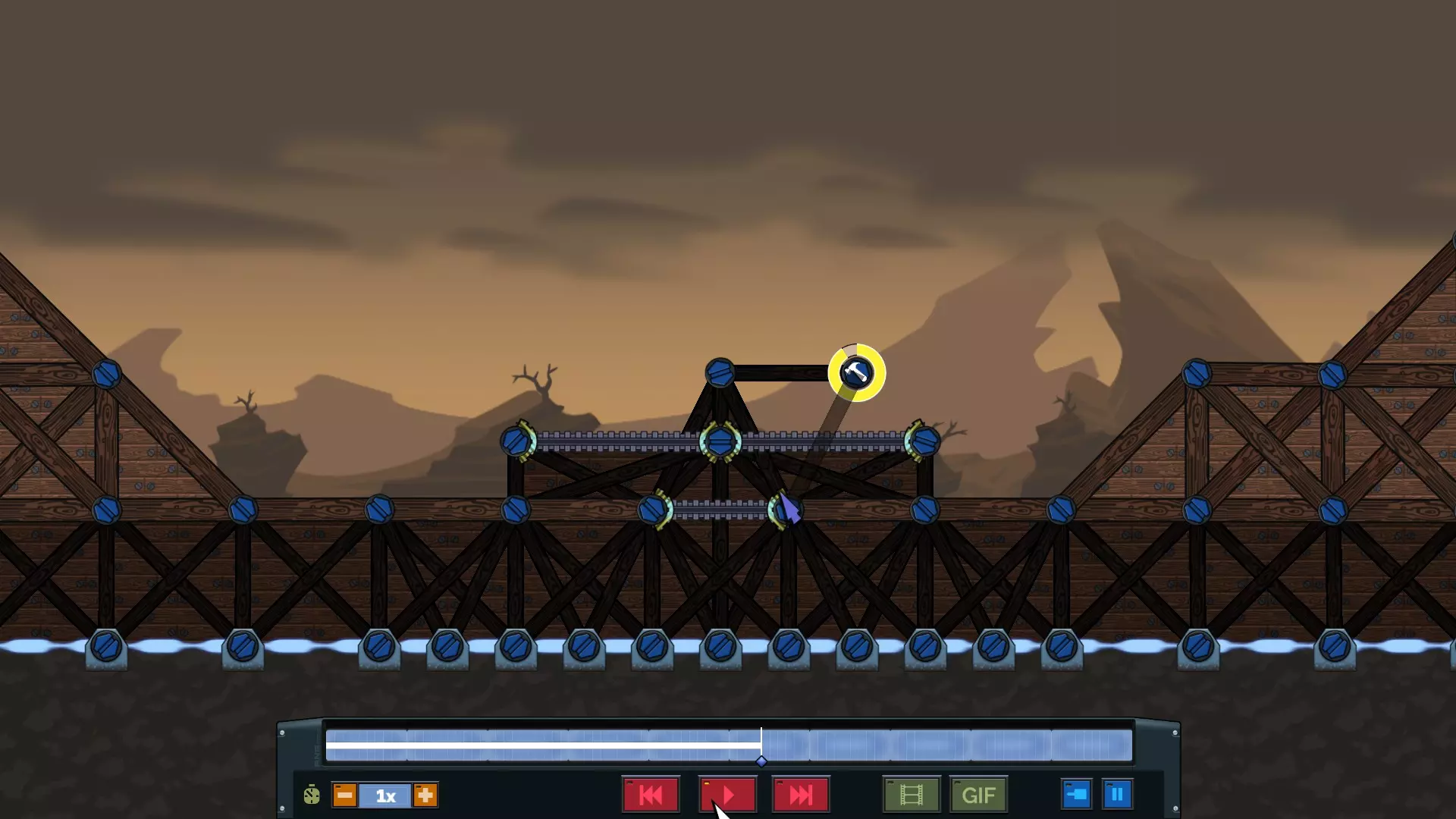 然后你需要放置底部组件,并在中间搭建一个小三角形来支撑顶部的传送门组件。搭建好“三角形”后,点击最顶部的连接点,向左或向右延伸搭建两个正方形,并让其吸附到网格上。接着连接到图片中所示的那个连接点。这个搭建顺序非常关键,因为它能为传送门组件提供正常运行所需的倾斜角度。复制完图片中的结构后,将该结构牢固地连接到你的结构支撑上。