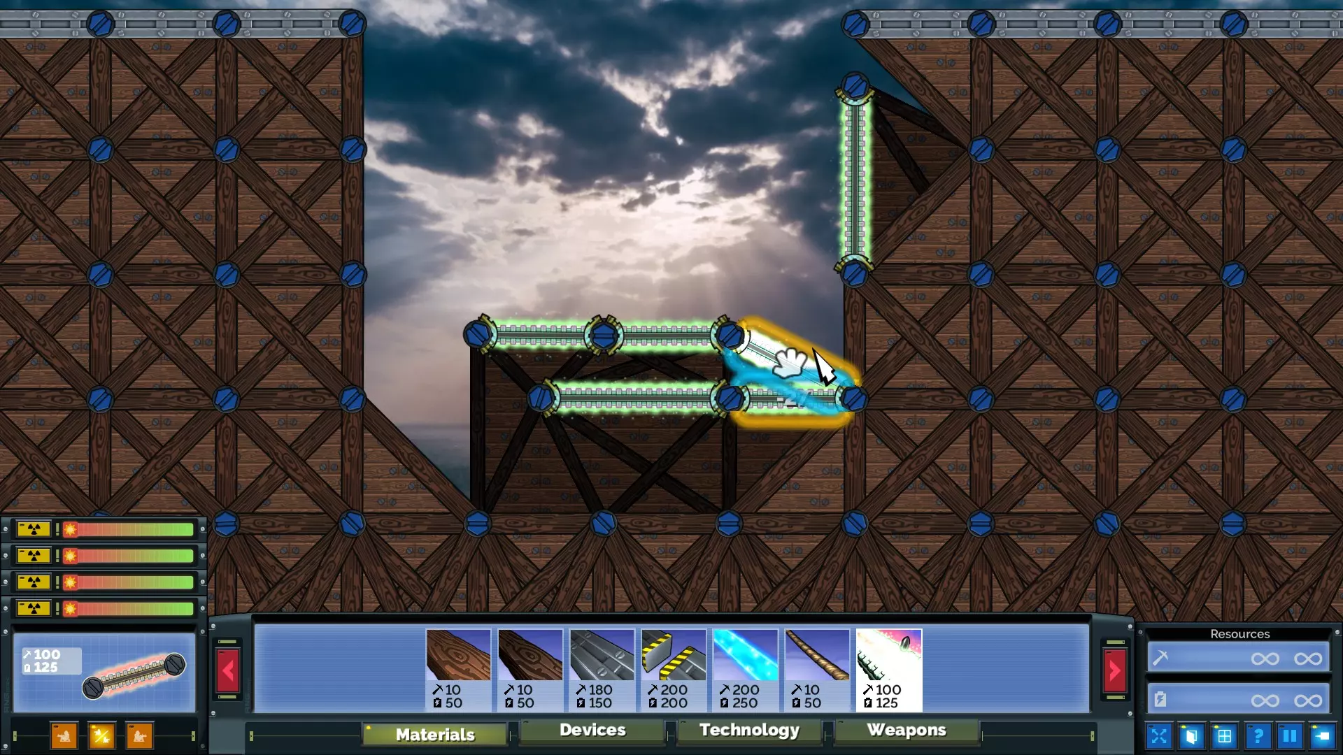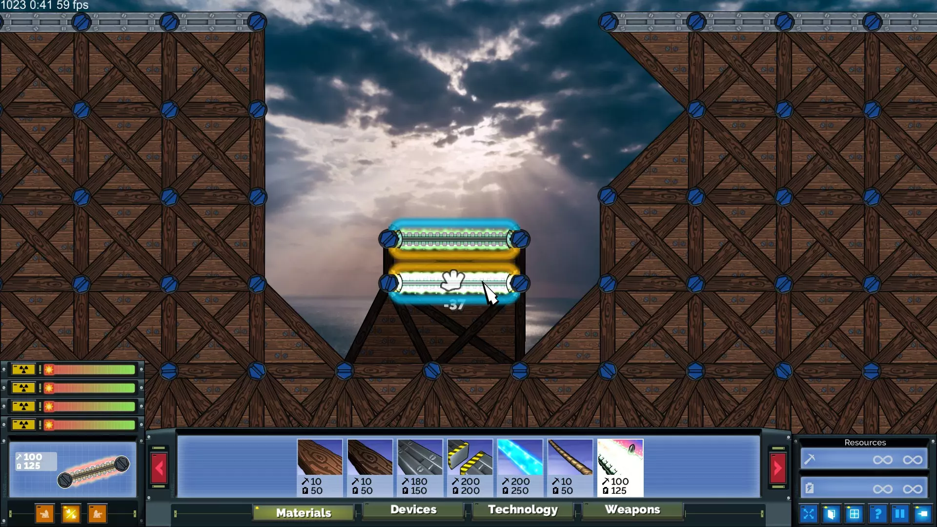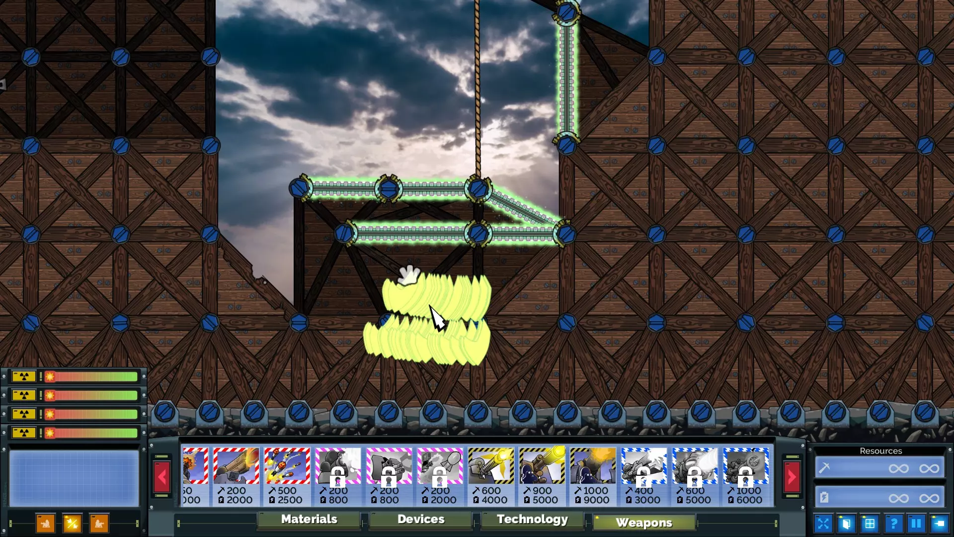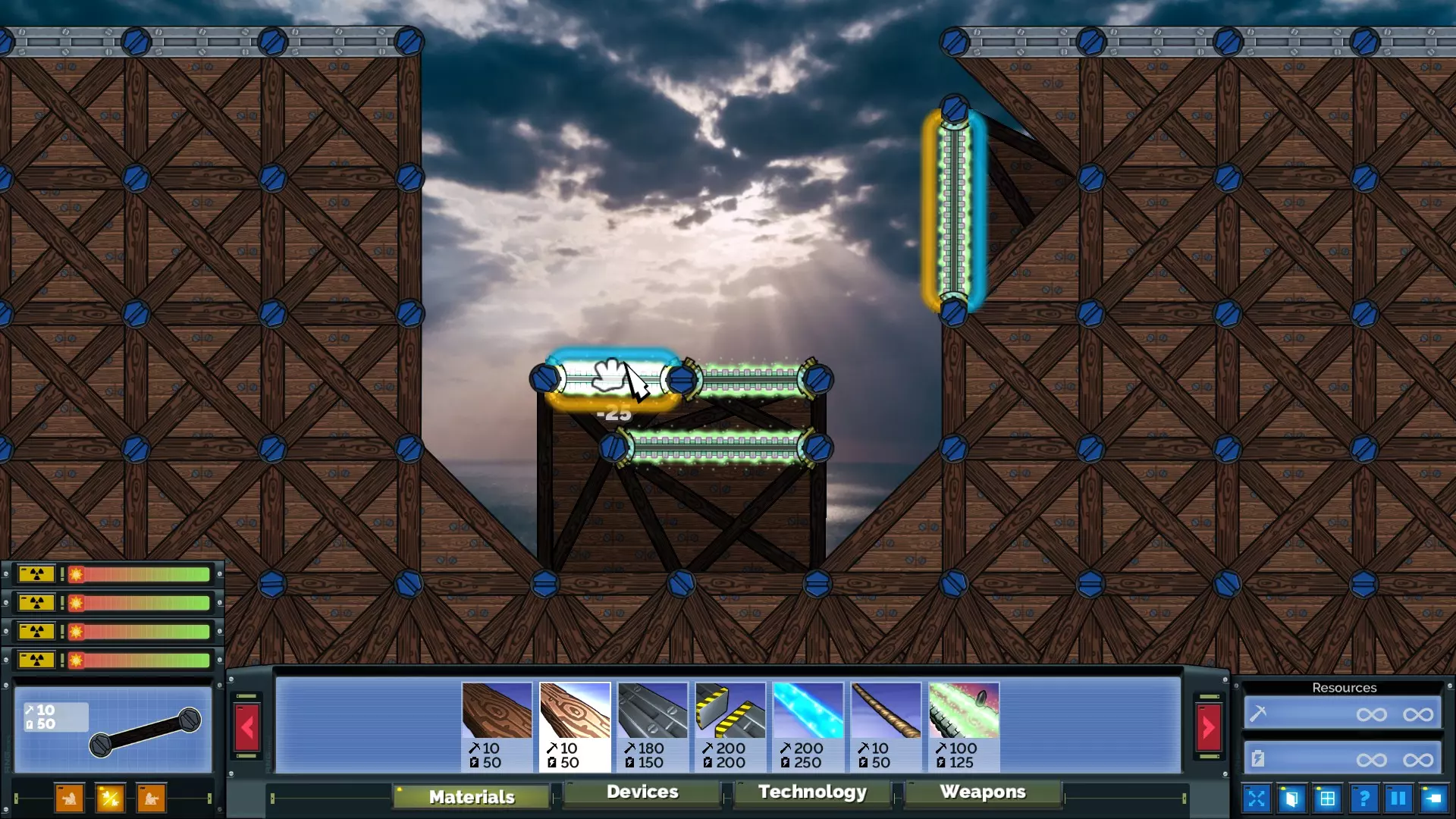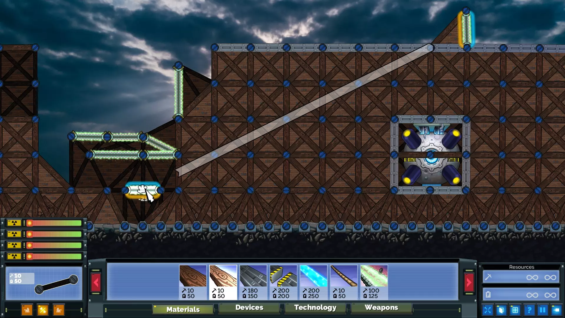 通过一致的建造顺序为传送门设置所需的倾斜角度后,建造加速器所需的精度要求大幅降低。塞维尔(Cevel)的首选武器是20毫米机炮,因为与常规机炮相比,20毫米机炮的总伤害更高,而且加速器能将炮弹集中起来。实际上,所有20毫米炮弹同时命中产生的动能不仅足以撕裂能量护盾,而且由于粒子与传送门的相互作用方式,该加速器的爆发仅持续几帧,因此在护盾被摧毁后,加速器还能击中护盾后方的目标(如右侧示例所示)。