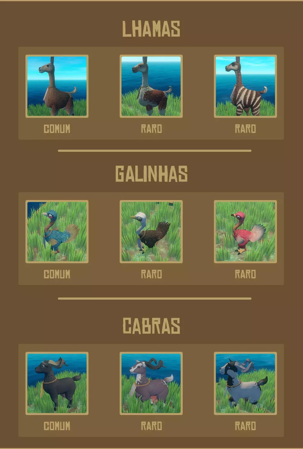 Expert Wrangler! 捕获50只动物。 ● 要获得所有相关成就,你需要捕获50只动物。 ● 你可以捕获的动物有美洲驼、山羊和咯咯鸡(cluckers),它们只在大岛屿上出现。 ● 你需要制作一个网枪和弹药来捕获动物。