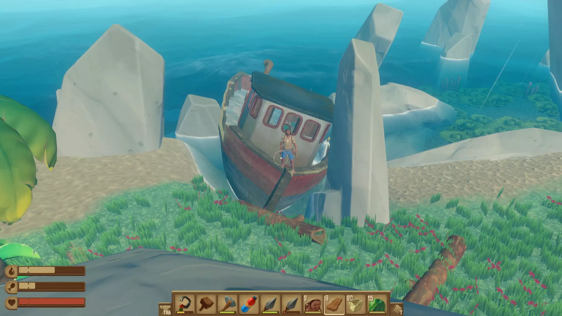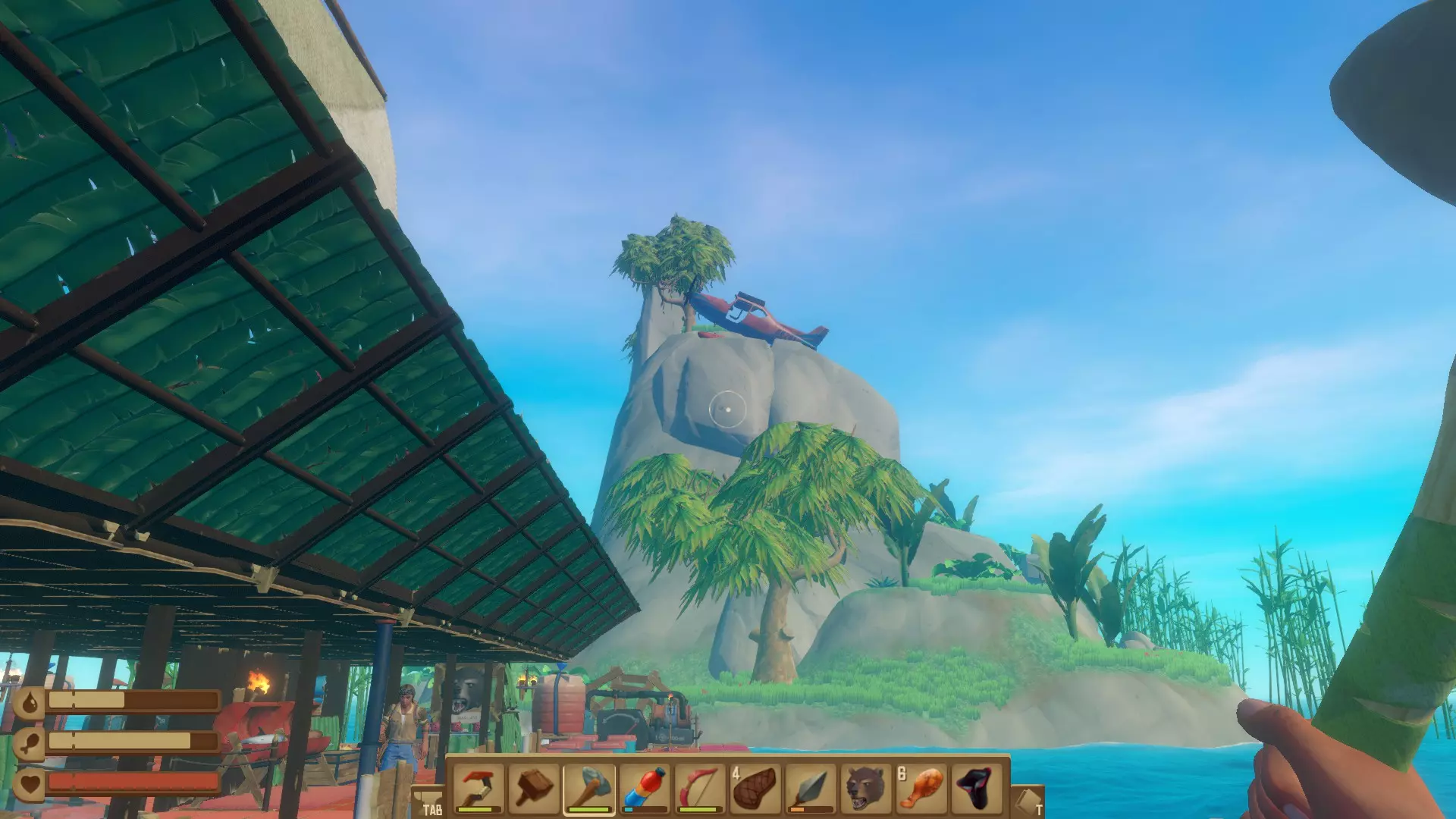 收到,船长! 在同一个木筏上放置一面船帆和一个固定锚。 ● 如果你和朋友一起游玩,朋友已经放置了船帆和锚,但你的成就没有解锁,不用担心,只需按“X”键移除后重新放置即可。