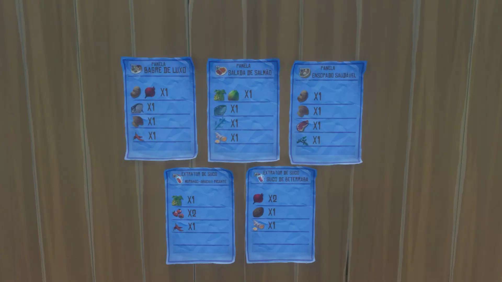 更复杂的调制! 按照食谱烹饪一道菜肴。 ● 建造一口锅。 ● 按照食谱将食材放入台面/锅中。食材可在大小岛屿、巡航船上、木桶以及海底找到。