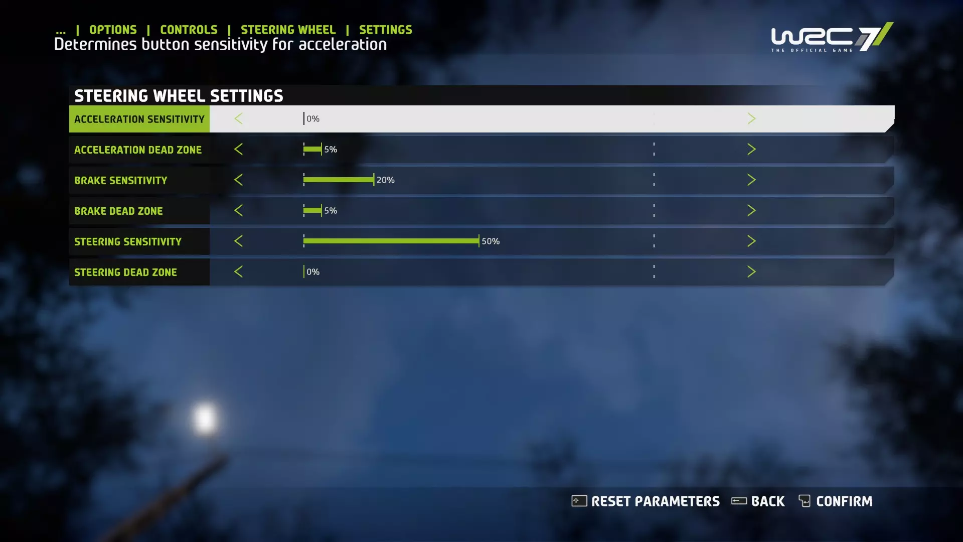 接下来,启动游戏,进入“控制”菜单,选择“方向盘”选项,然后进入方向盘设置。G29的刹车有点硬,所以将灵敏度保持在20%,如果觉得刹车困难可以适当调高。以下是我使用的设置: