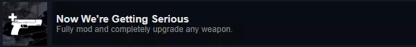 成就:Now We're Getting Serious 说明:将一件武器完全改装升级。