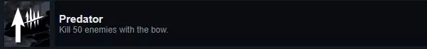 成就:Predator 说明:使用弓箭击杀50个敌人。