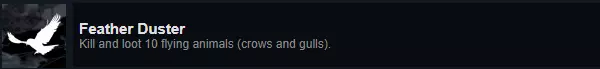 成就:Feather Duster 说明:猎杀并劫掠10只飞禽(例如乌鸦、海鸥)