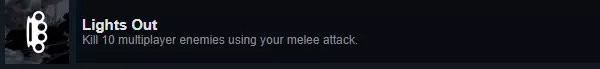 成就:Lights Out 说明:联机模式中使用近战武器杀死10名玩家。