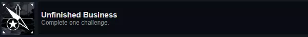 成就:Unfinished Business 说明:完成一项挑战。