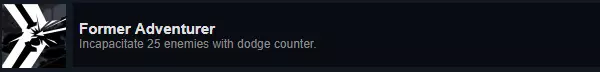 成就:Former Adventurer 说明:使用闪避反击使25个敌人失去行动能力(近战对抗时按Shift闪避,然后按F触发自动攻击敌人膝盖)
