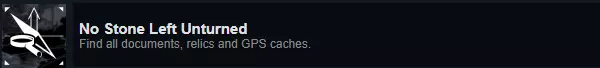成就:No Stone Left Unturned 说明:收集100%的文献、遗物及定位秘宝。