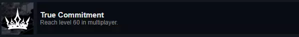 成就:True Commitment 说明:联机模式中达到60级。