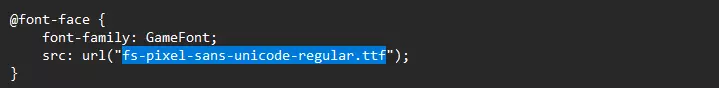 在你的游戏目录中,你会看到一个名为“fonts”的文件夹。确保你已安装好字体后,将下载的.ttf文件放入该文件夹,并用文本编辑器打开“gamefont.css”。 你会看到这一行:src: url(mplus-1m-regular.ttf);。将括号内的内容替换为你新安装的字体名称(包括文件格式)。