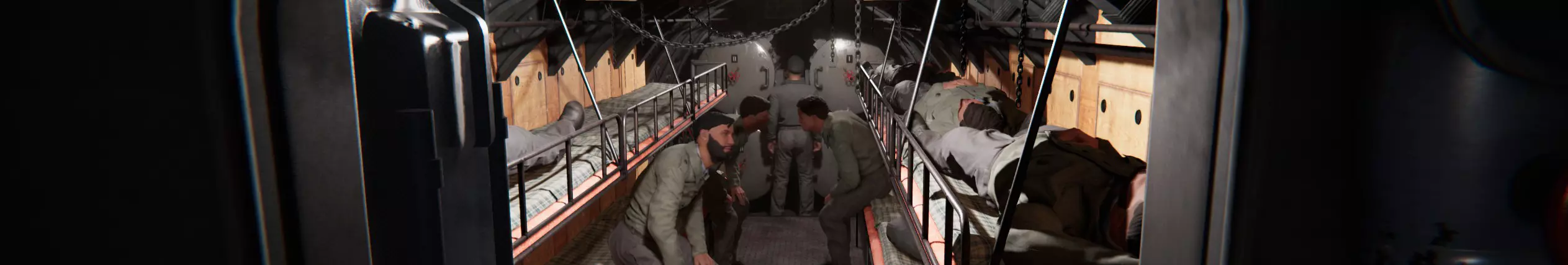 船员们正在布格劳姆休息 这里建议,当月光并非重要因素时,可借助风力在水面悄然滑行。 由于我所知的游戏中并无此类模拟,我们将在本节提供一些杂项提示: - 船只的朝向会影响其被发现的难易程度:当潜艇正对着观察者时,很难被发现;而从侧面观察时,潜艇的轮廓会大得多。在护航队周围机动时,请记住这一点。 - 水下情况亦是如此:正面朝向的潜艇所产生的 ASDIC(声呐)信号,远小于侧面被声波探测到的潜艇。 - ASDIC(声呐)在舰船龙骨下方存在一个盲区。当驱逐舰对你进行深水炸弹攻击时,它们其实已经失去了与你的直接接触,只是在船员预测你可能会在的位置投掷炸弹。你可以利用这个时机突然改变航速、航向和下潜深度,以此躲避炸弹并悄悄溜走。不过,刺猬弹的出现让敌人能够在持续锁定你的情况下对你发动攻击。 ASDIC(声呐)和水听器在舰船后方都存在一个盲区。舰船自身螺旋桨产生的噪音会使其无法探测到外来噪音,你的潜艇也是如此。 当潜艇在水下进水时,你可以让军官右键点击阀门来调整压载水。这样可以从压载舱中排出足够的水,以保持潜艇的浮力平衡,抵消内部舱室进水带来的影响。如果你感觉无法坚持下去,可以进行紧急吹除压载,使用所有压缩空气吹除压载舱以争取时间。 下潜深度越大,由于外部压力的影响,水泵的效率就越低。 你的柴油机运行时会留下烟雾轨迹,可能被敌人发现。你可以通过降低速度,或者让拥有适当技能的轮机长管理引擎来减少烟雾。 在可能的情况下,坐底(将潜艇停在海床上)会大幅降低你的ASDIC(潜艇探测器)信号特征,因为你会与海底融为一体。不过敌人仍能通过水听器听到你的动静,所以务必保持安静,此时你会更加脆弱。在与敌人交战前,你可以为鱼雷加热,以降低脱靶或提前引爆的风险。 在第三人称模式下,每个舱室的左下角都有三个可用按钮,通过这些按钮你可以切断舱室电力、疏散人员,或下令将水输送至主舱室(那里的舱底泵效果最佳)。 需要注意的是,如果你关闭了正在进水舱室的舱壁,由于水在另一侧施加的压力,可能很难再次打开它。 你可以靠近并检查悬挂中立旗帜的船只,以确认它们不是帮助敌人的走私者。 8. “每个目标发射一枚鱼雷,不要使用扇形齐射”