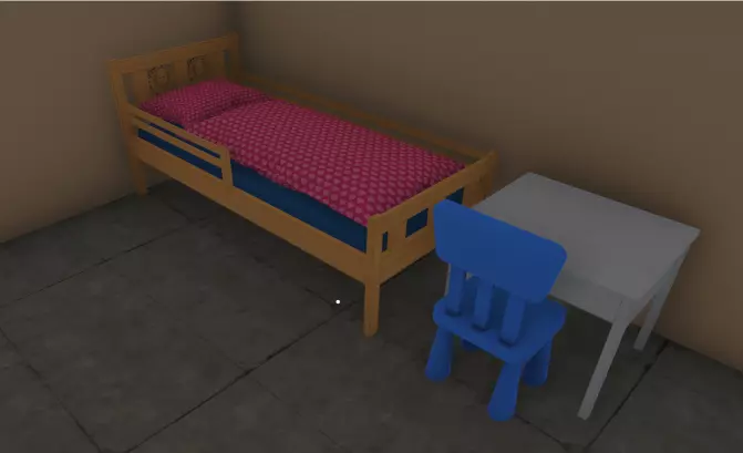 带花纹靠垫的宠物床 宠物木质书桌 儿童椅 2间卧室