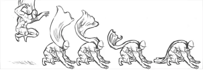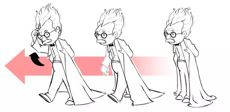 预期能让观众为角色即将执行的动作做好准备。当角色准备跳跃时,他们会弯曲膝盖;当他们准备出拳攻击某物或某人时,会预先摆臂蓄力。这些动作向观众预示着即将发生的重要行为。就像“挤压与拉伸”原理一样,预期动作的夸张程度越高,产生的效果就越显著。