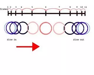 “慢入慢出”指的是角色开始移动时的加速过程,以及完成动作时的减速过程。在2D动画中,为实现这一效果,动画师会在动作中段减少绘制张数,而在动作始末增加绘制张数。在3D动画中,动画师则会在动作中段减少关键帧数量,或者通过调整曲线,使每个动作的始末部分更加平缓。 弧线