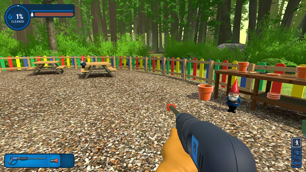 又躲回邻居的栅栏后面了?哼,这次不会让你得逞太久。我会一直用水管冲你,直到我满意为止! 鞋屋 这次,他们有3个!一定有办法阻止这场地精末日……