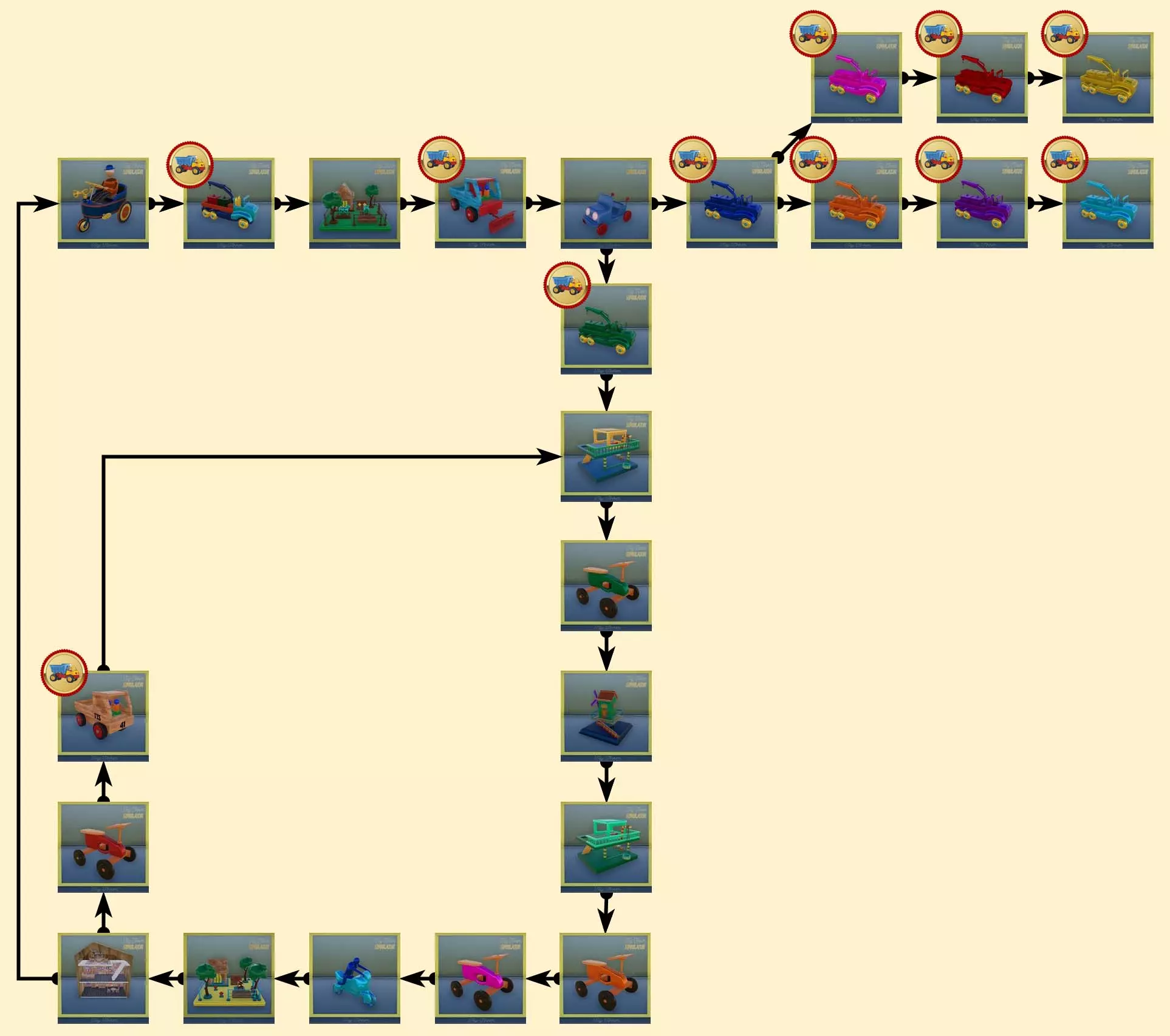 卡车 “熟练工”类别中隐藏着大量卡车。这是获取它们的捷径。重复此路径,直至解锁最后一个与卡车相关的成就。