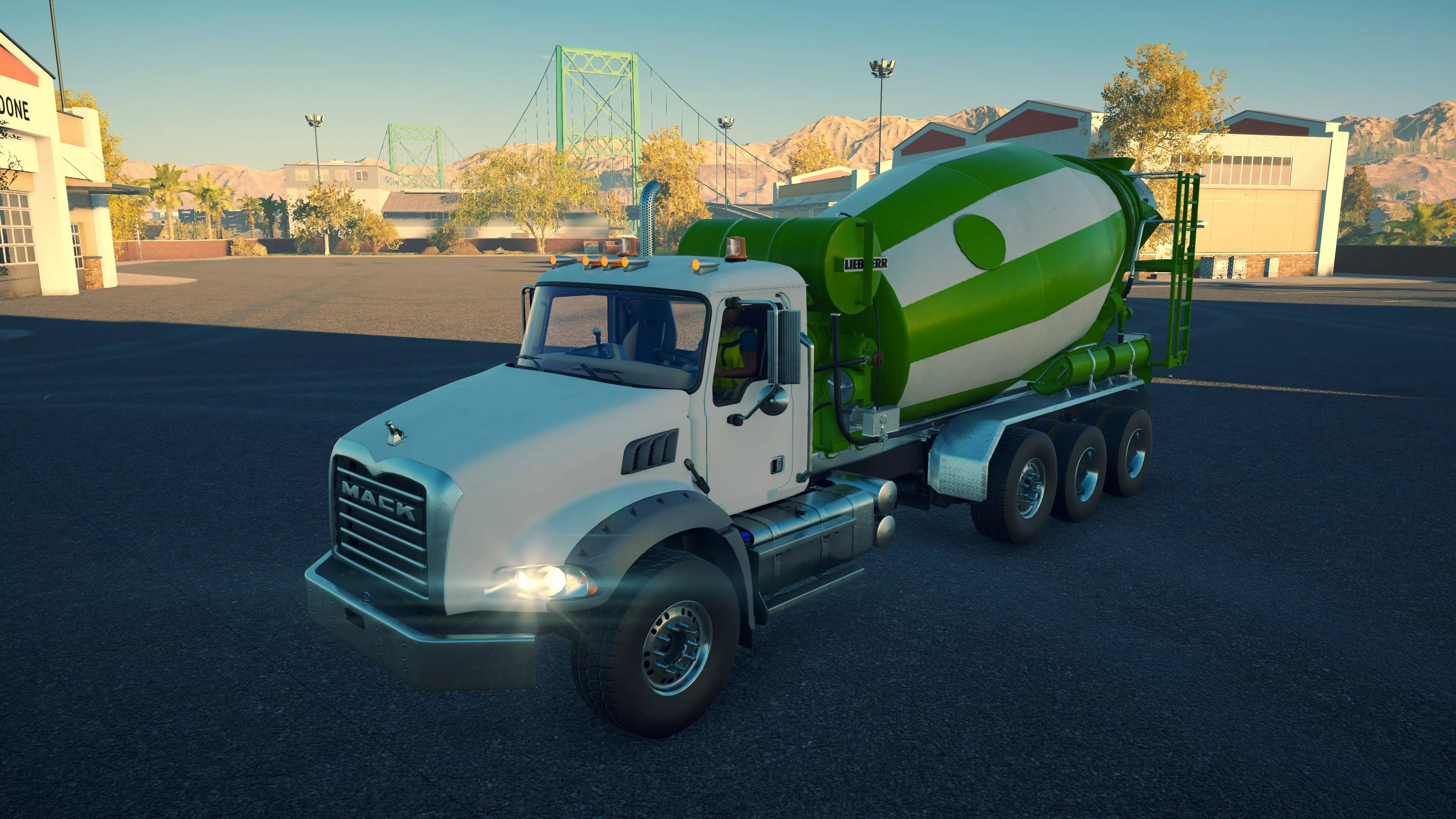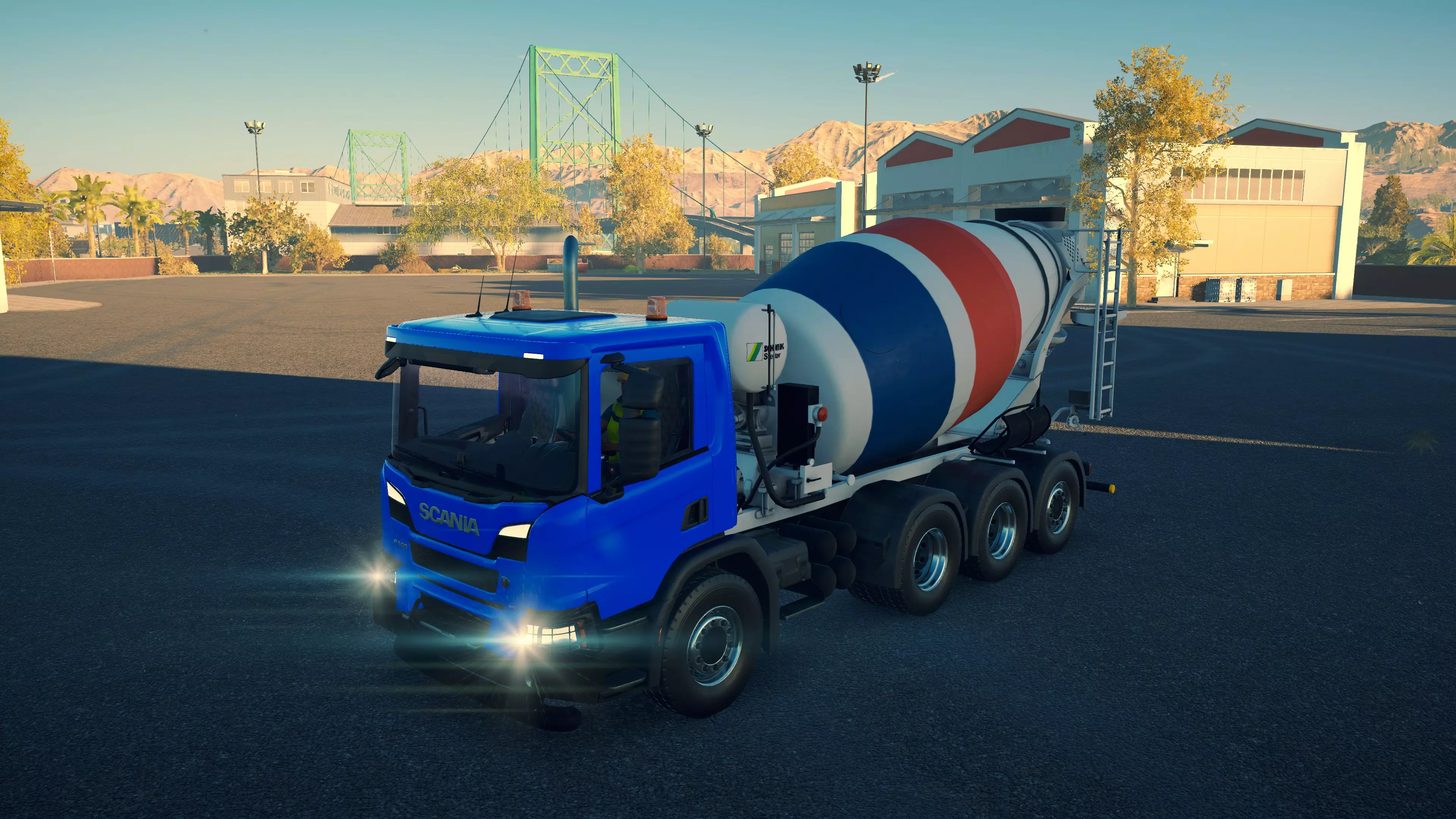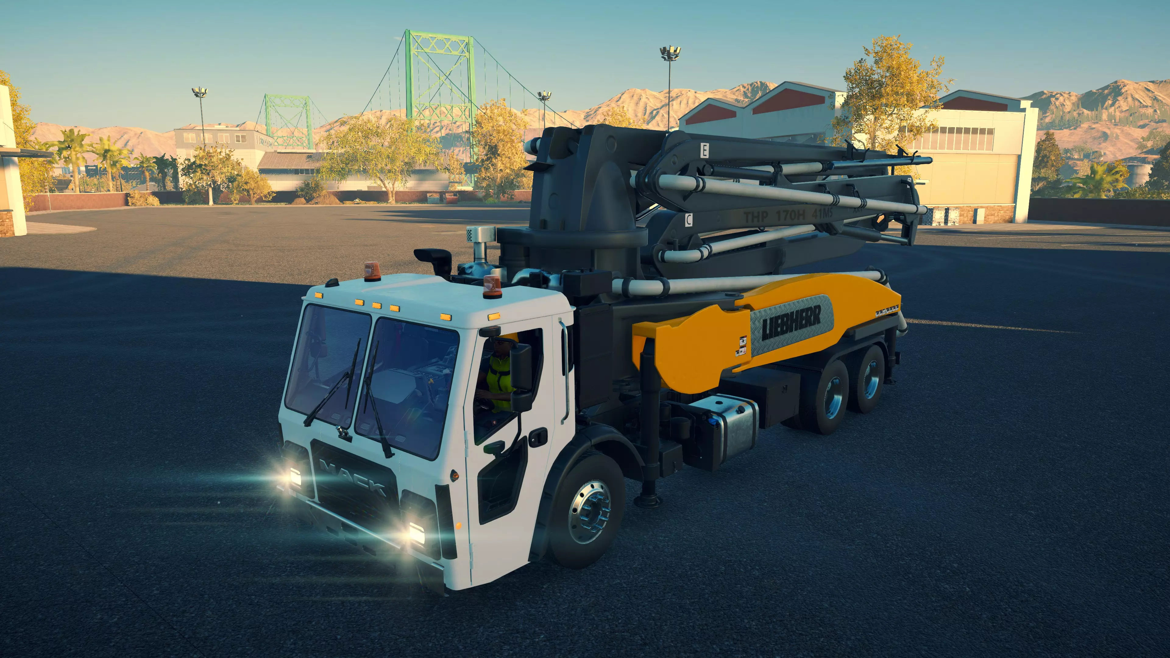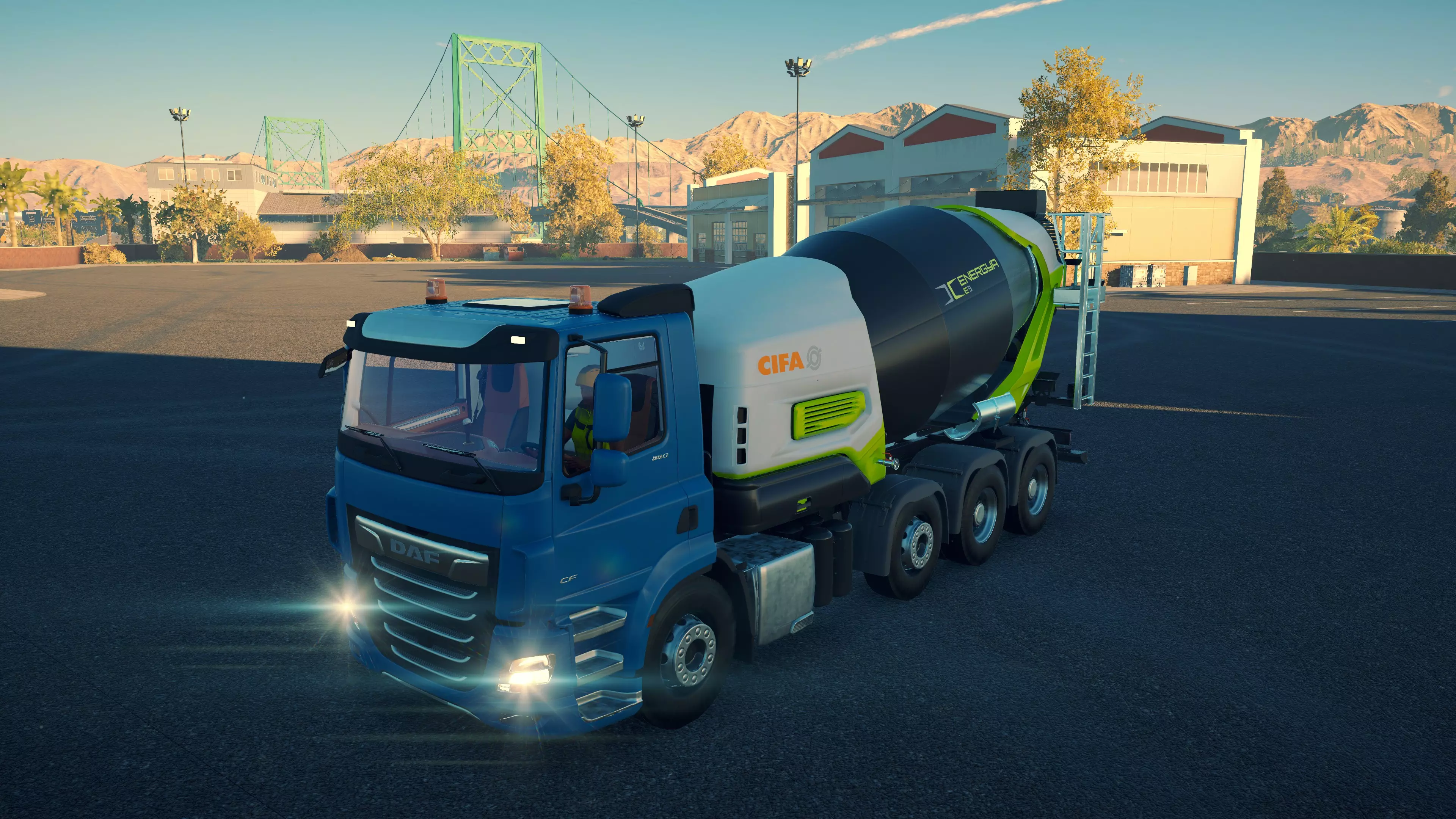 DAF CF 430 FAC 8X2/CIFA MK25H Carbotech 购买/租赁 - 180,000美元/3,600美元 长度 - 9.88米 宽度/带支架 - 3.02米/4.2米 高度/带支架 - 3.88米/4.02米 转弯直径 - 18米 最高速度 - 88公里/小时/14公里/小时 加速性能 - 10.2秒内加速至60公里/小时 最大臂架长度 - 20米 散装物料容量 - 35立方米+1立方米 压力测试 - 2分02秒 混凝土泵 选择混凝土泵时,首要考虑因素是臂架的作业范围。因此,DAF显然是最佳的混凝土泵,尤其是它还是价格较低的型号之一。不过,它的机动性最差,且需要大量空间进行 setup。斯堪尼亚(Scania)的臂架比曼恩(MAN)更长,而且价格更低,setup所需空间也更小,实际上是所有混凝土泵中所需空间最小的。马克卡车与曼恩沥青卡车并列游戏中最快的卡车,不过倒车时速度稍慢一些。除此之外,没有任何理由能证明多花20,000美元是值得的。斯堪尼亚和达夫是最佳的混凝土泵车。