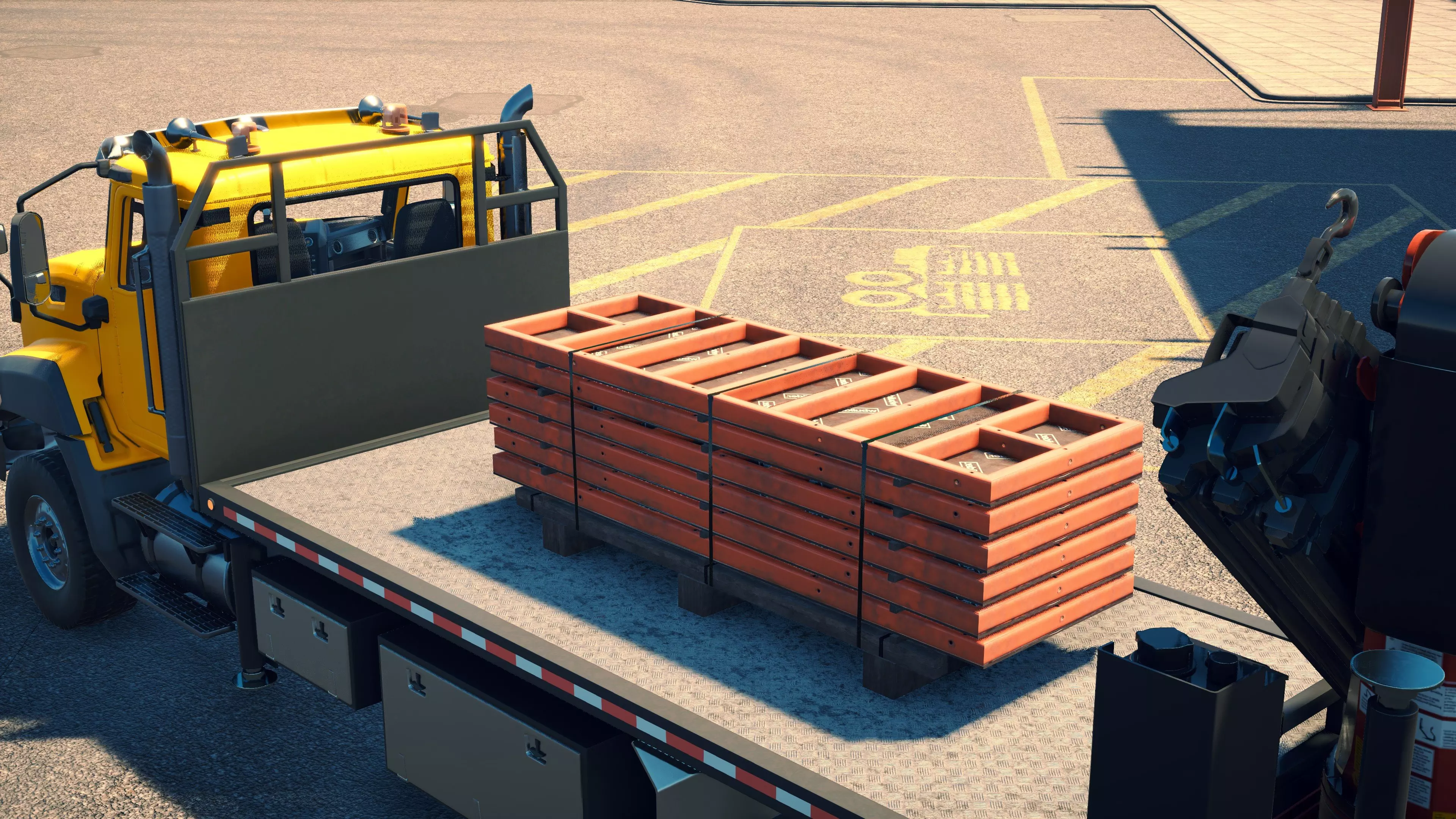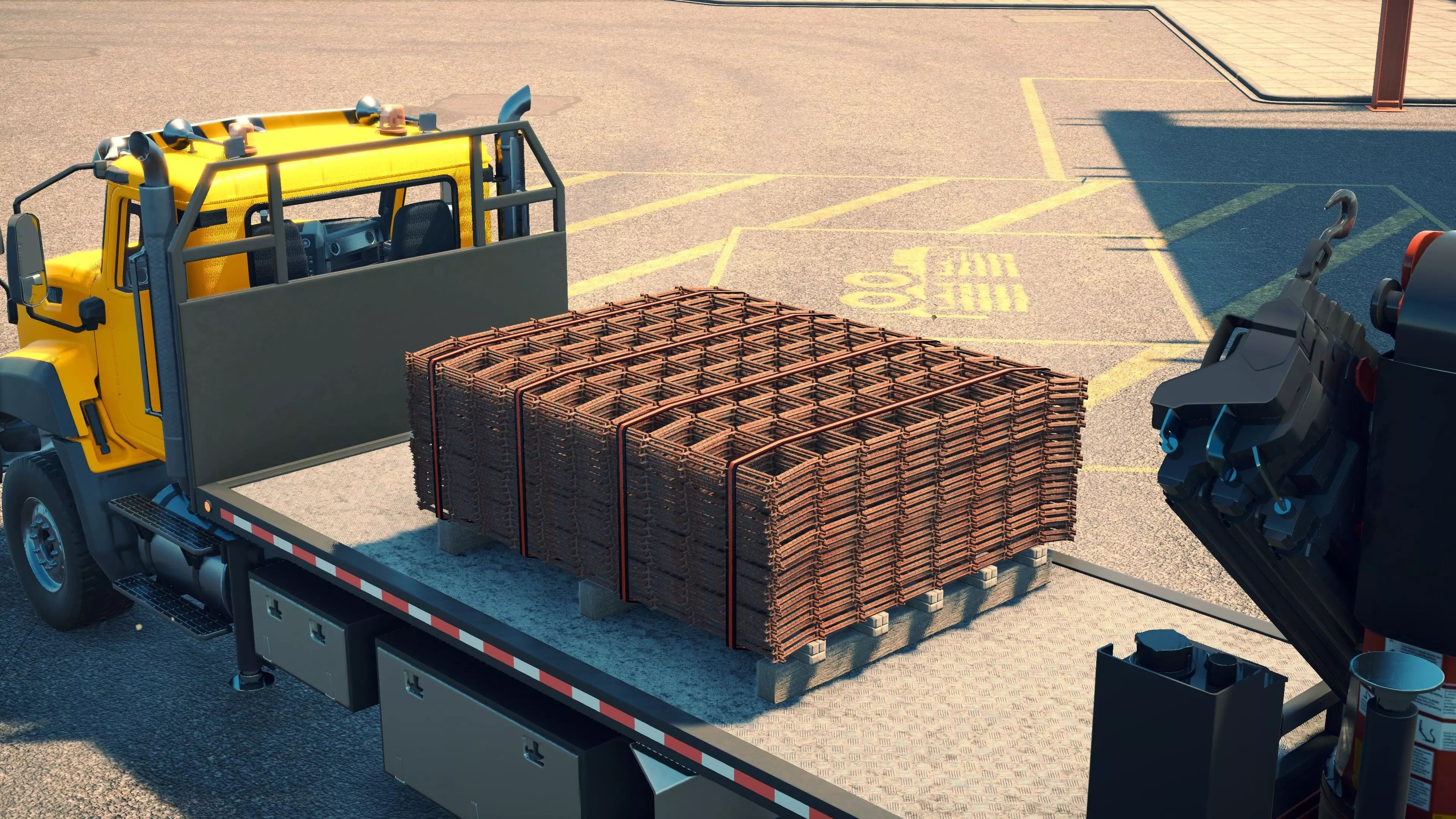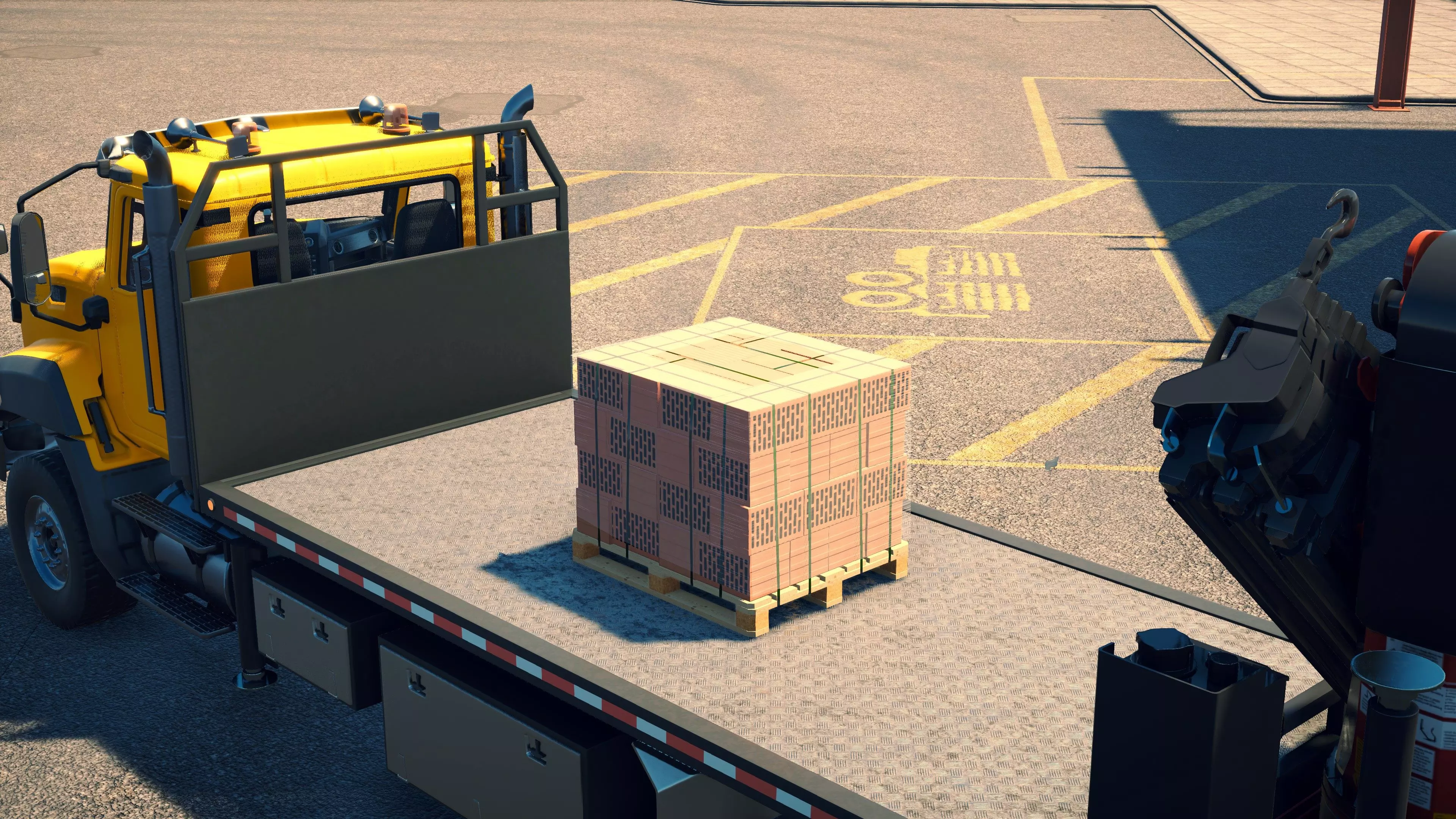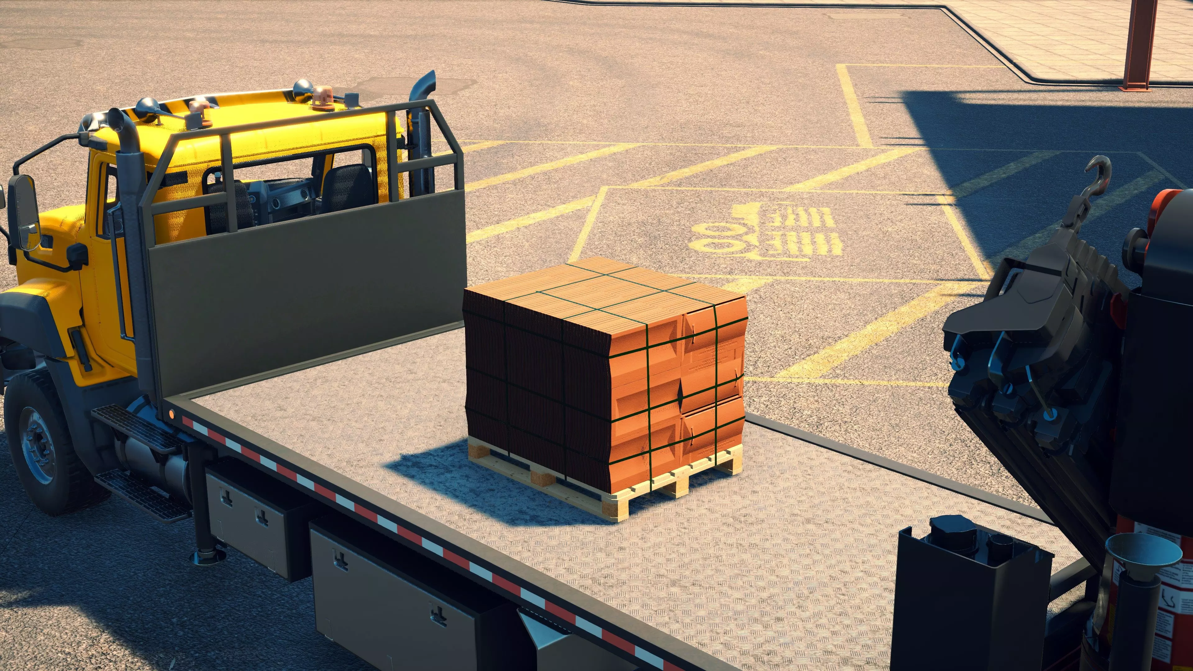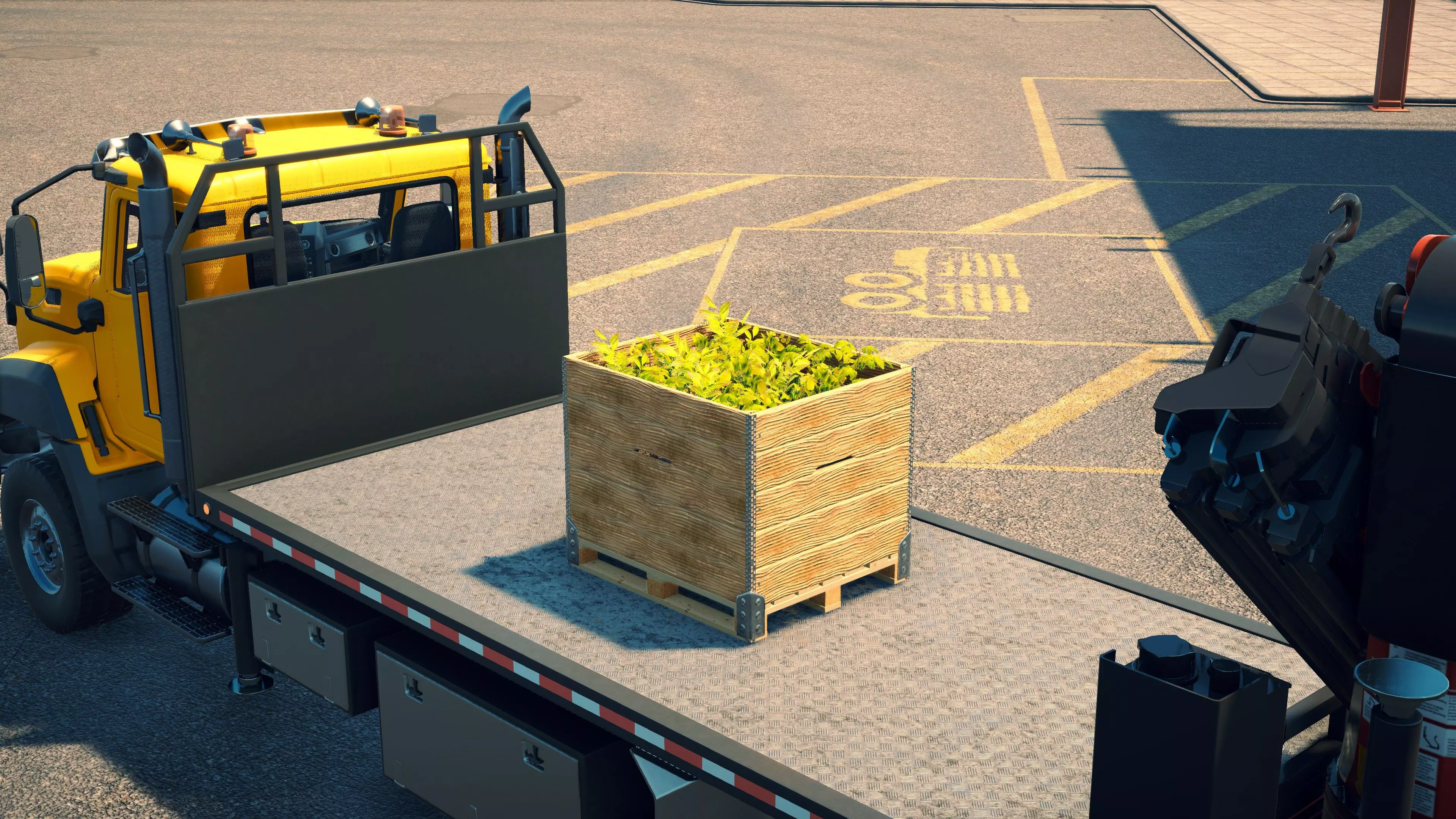 MAN TGS/帕尔芬格 PK 27002/迈勒 D316 购买/租赁 - 100,000美元/2000美元 长度 - 8.26米 宽度/带支架宽度 - 2.92米/5.36米 高度/带支架高度 - 3.66米/3.7米 转弯直径 - 17米 最高速度 - 93公里/小时/14公里/小时 加速度 - 10秒内达到60公里/小时 货舱(单位) - 21长/10宽/10高(4.2米/2米/2米) 散装物料容量 - 8.22立方米 压力测试 - 2分00秒 起重机最大作业半径 - 16米 最大吊钩高度 - 19.5米 360度旋转时间 - 13.5秒 起重机展开/折叠时间 - 10.5秒 起重机伸出/缩回时间 - 13秒 起重等级 - A 可以说,这是两款平板起重机中更出色的一款。其最高速度和加速度几乎相同,上坡时能更好地保持速度,不过更容易失去牵引力。正如你对平头驾驶室车型的预期,它体型更小,转弯直径也更紧凑。它也配备了相同型号的起重机,但这辆卡车真正的优势在于其运输散装物料的能力,这足以弥补货厢面积较小的不足。其装载量超过肯沃斯T880自卸卡车的40%,这一优势不容小觑。当然,一旦拥有了专用的自卸卡车,你就不会再想用它了。但在初期,当你需要充分利用现有资源时,它的多功能性非常突出。 带起重机的拖拉机