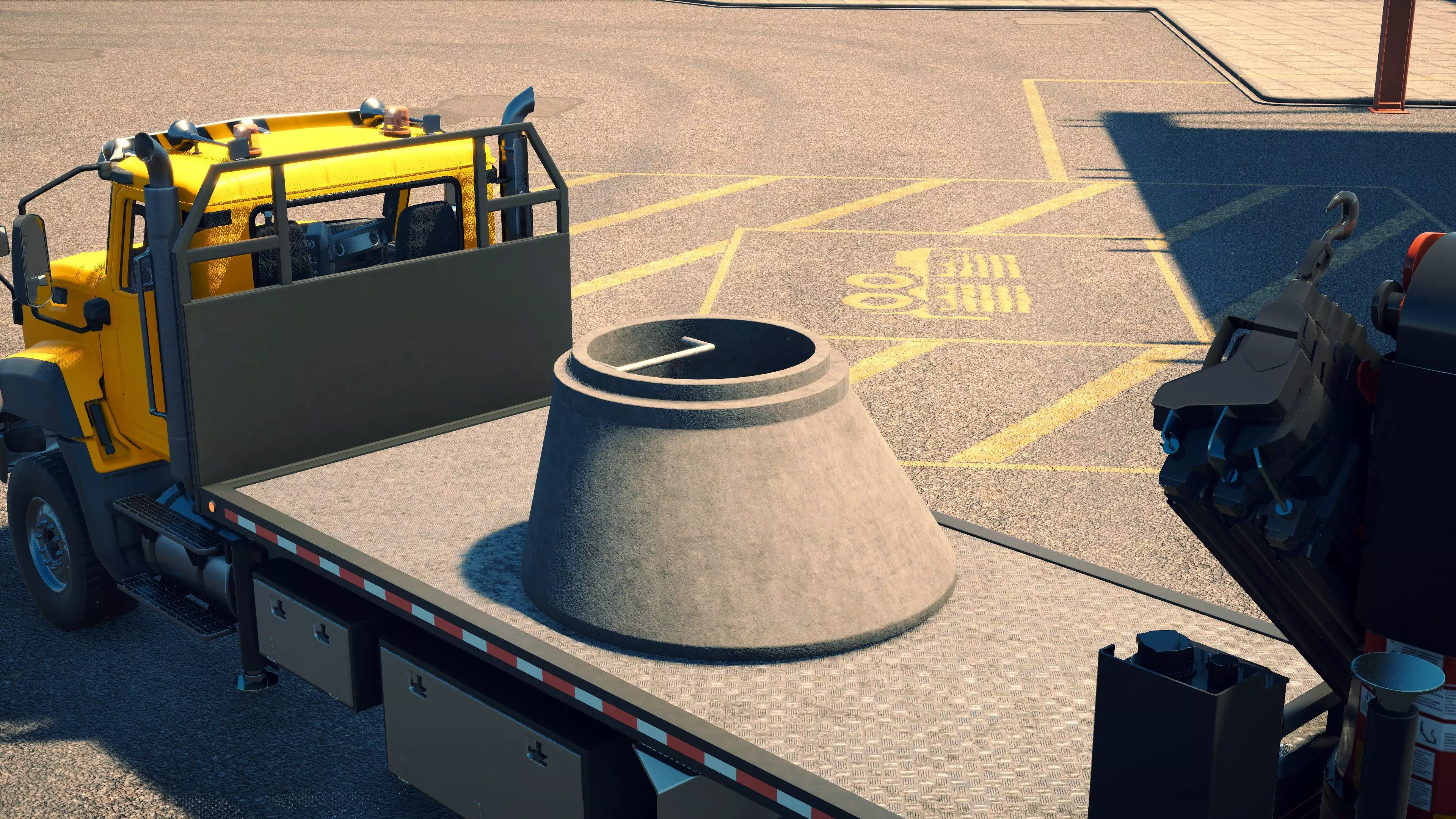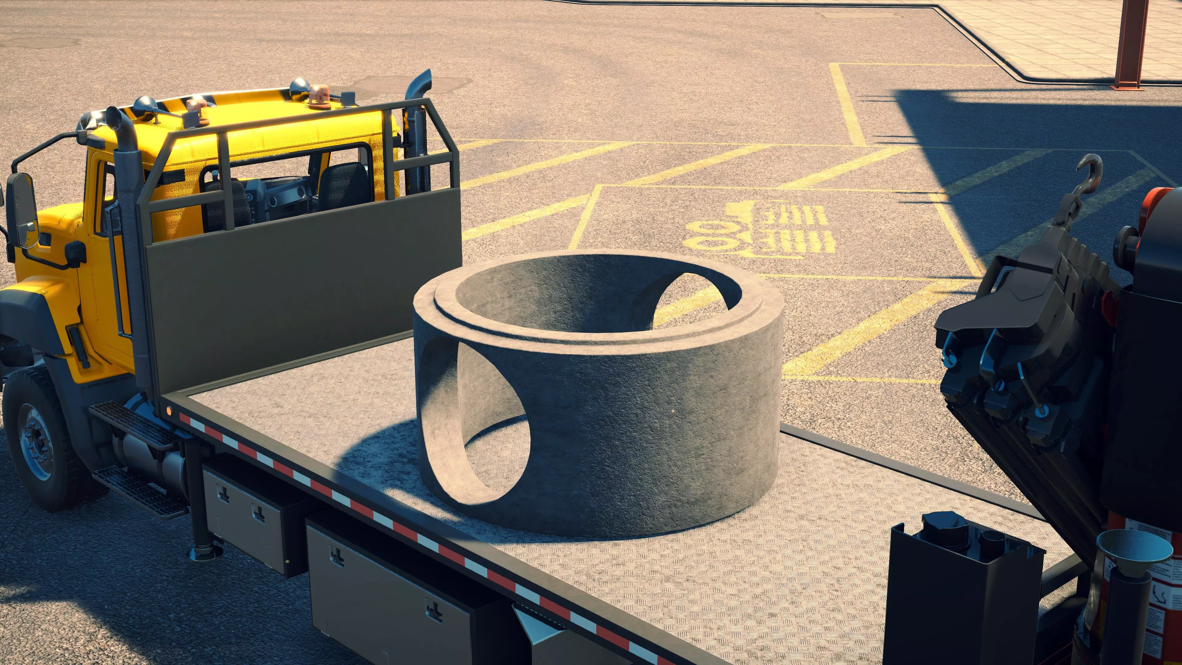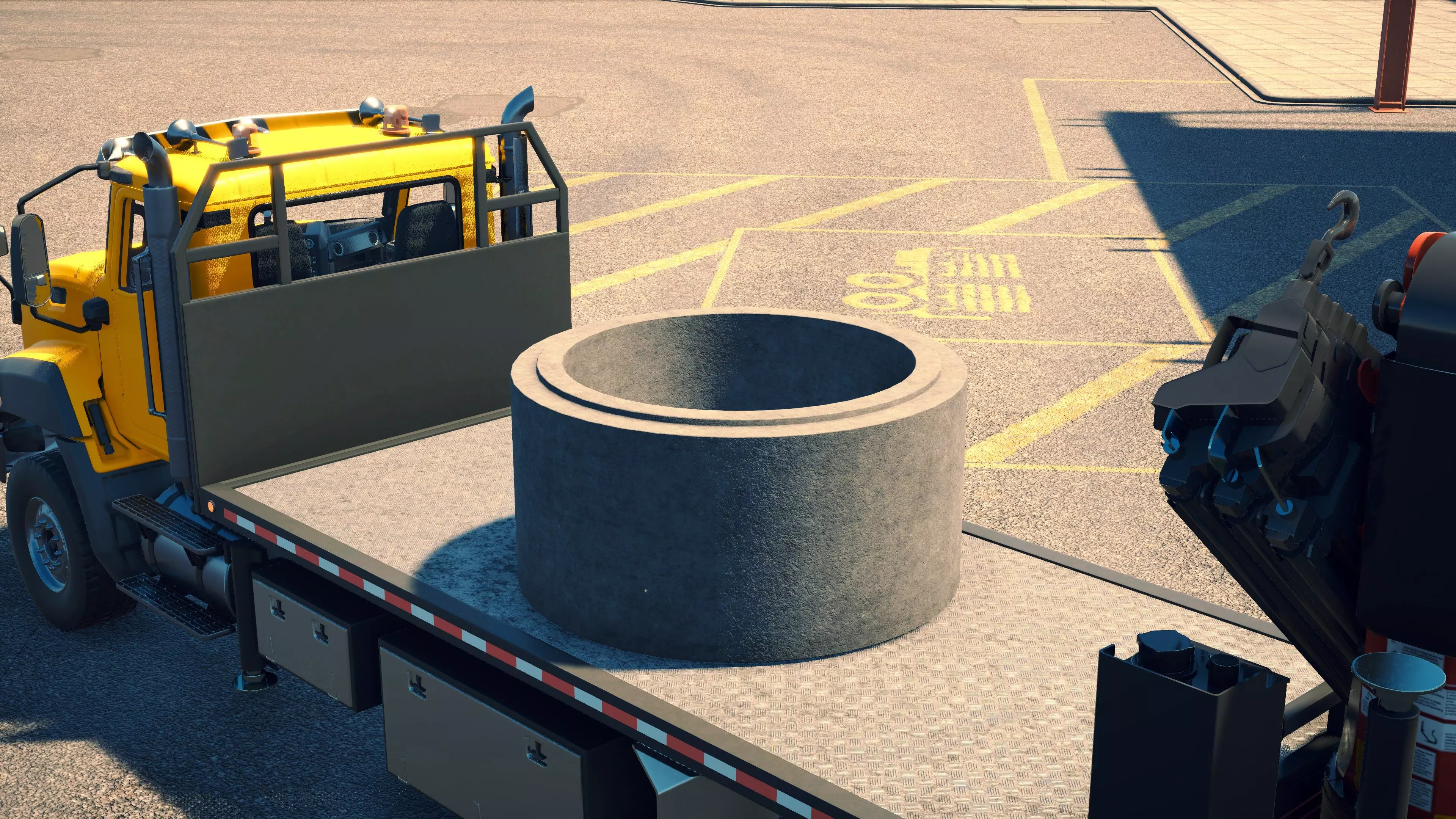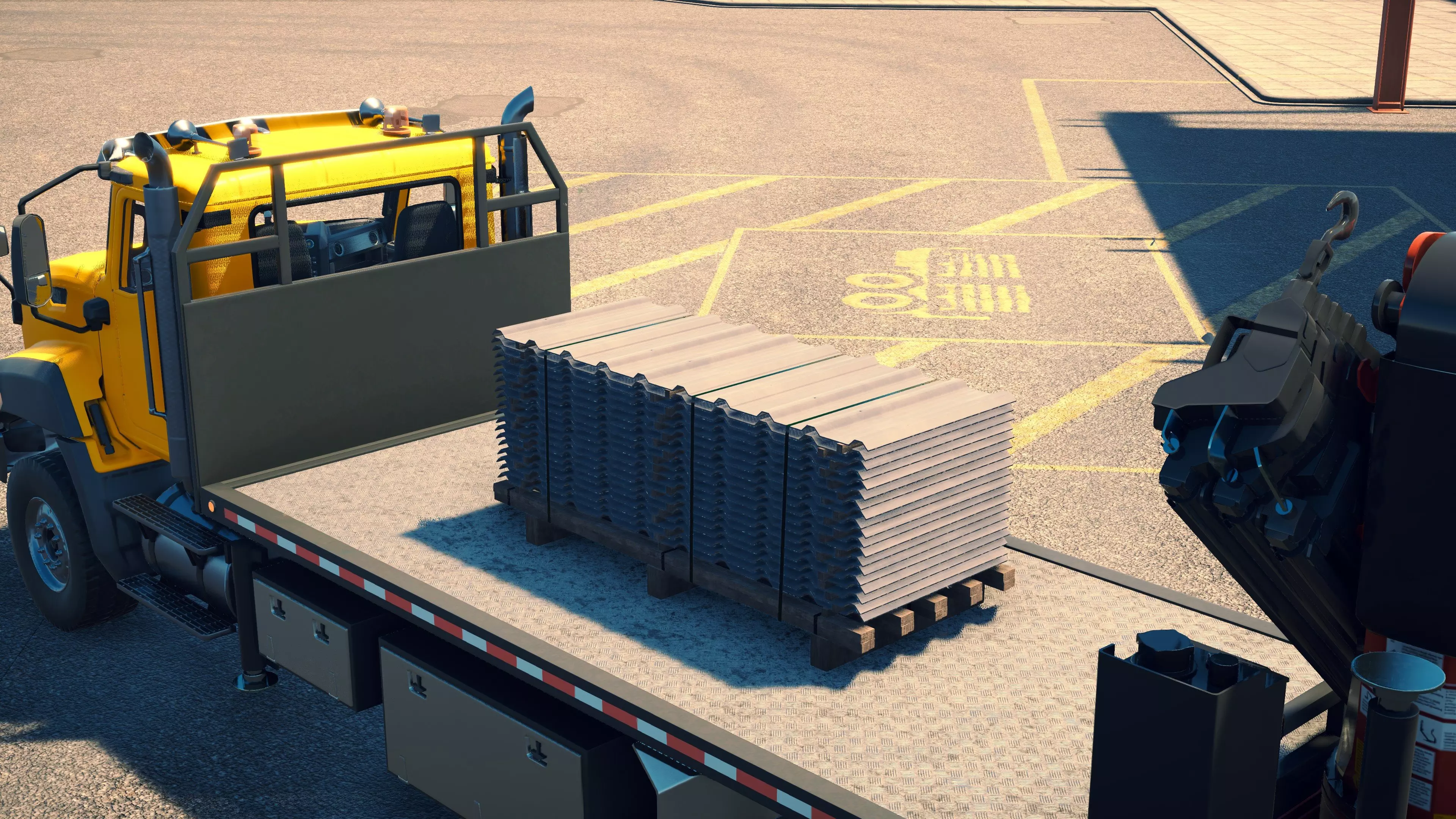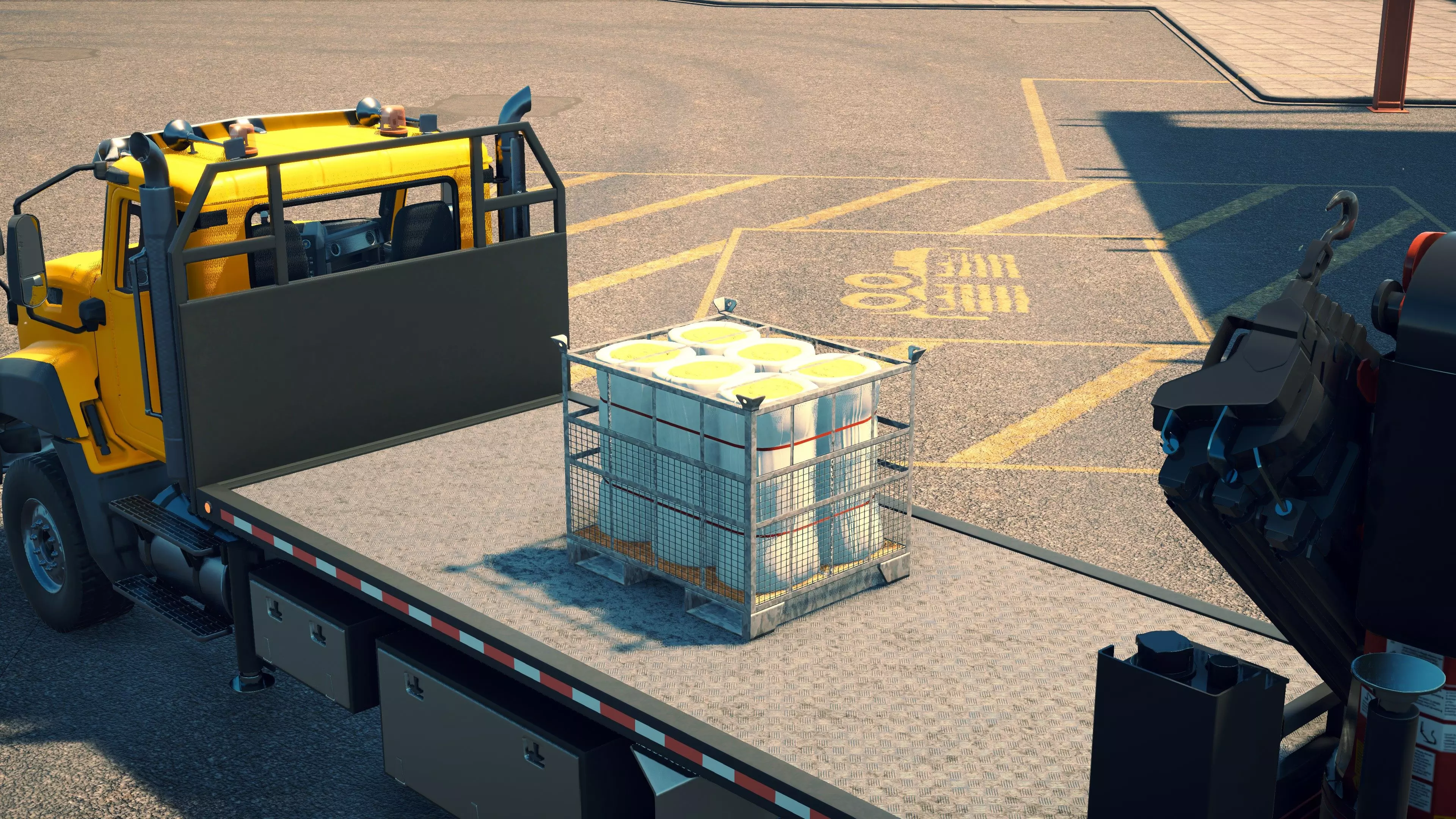 MAN TGS/帕尔芬格 PK 27002/迈勒 D316 购买/租赁 - 100,000美元/2000美元 长度 - 8.26米 宽度/带支架宽度 - 2.92米/5.36米 高度/带支架高度 - 3.66米/3.7米 转弯直径 - 17米 最高速度 - 93公里/小时/14公里/小时 加速度 - 10秒内达到60公里/小时 货舱(单位) - 21长/10宽/10高(4.2米/2米/2米) 散装物料容量 - 8.22立方米 压力测试 - 2分00秒 起重机最大作业半径 - 16米 最大吊钩高度 - 19.5米 360度旋转时间 - 13.5秒 起重机展开/折叠时间 - 10.5秒 起重机伸出/缩回时间 - 13秒 起重等级 - A 可以说,这是两款平板起重机中更出色的一款。其最高速度和加速度几乎相同,上坡时能更好地保持速度,不过更容易失去牵引力。正如你对平头驾驶室车型的预期,它体型更小,转弯直径也更紧凑。它也配备了相同型号的起重机,但这辆卡车真正的优势在于其运输散装物料的能力,这足以弥补货厢面积较小的不足。其装载量超过肯沃斯T880自卸卡车的40%,这一优势不容小觑。当然,一旦拥有了专用的自卸卡车,你就不会再想用它了。但在初期,当你需要充分利用现有资源时,它的多功能性非常突出。 带起重机的拖拉机